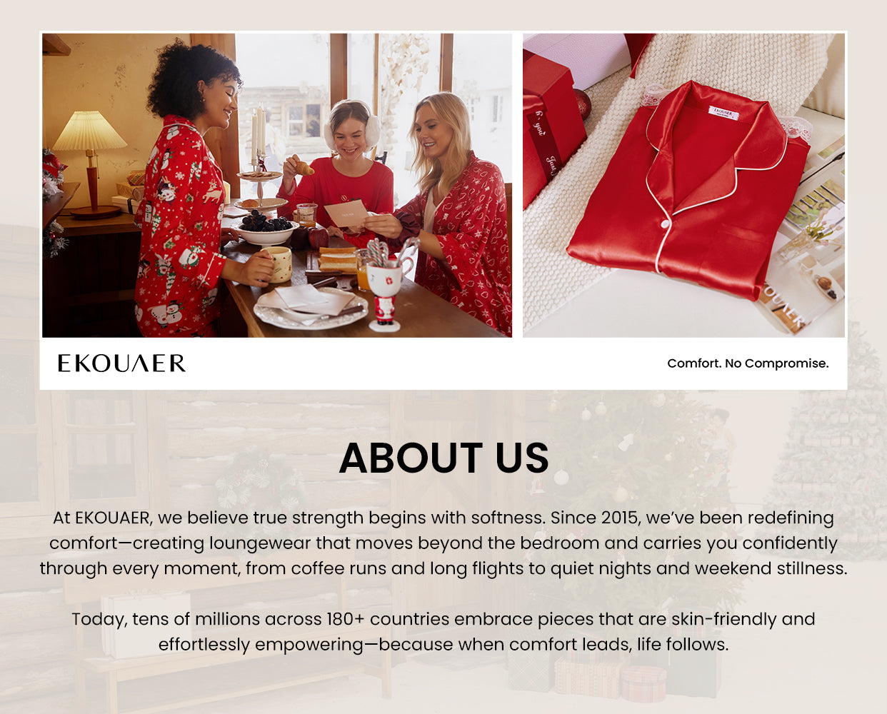At EKOUAER, we believe true strength begins with softness. Since 2015, we’ve been redefining comfort—creating loungewear that moves beyond the bedroom and carries you confidently through every moment, from coffee runs and long flights to quiet nights and weekend stillness.
