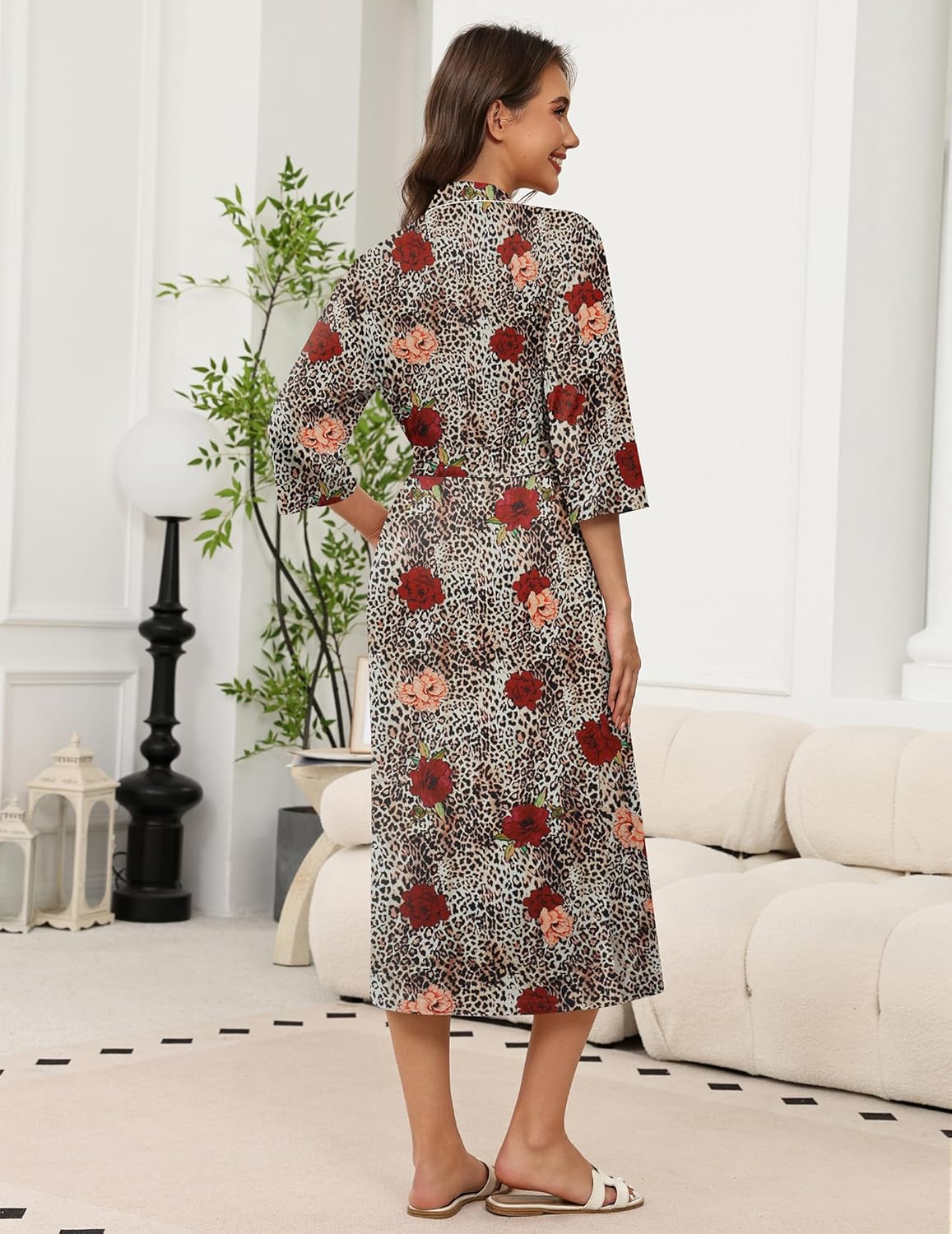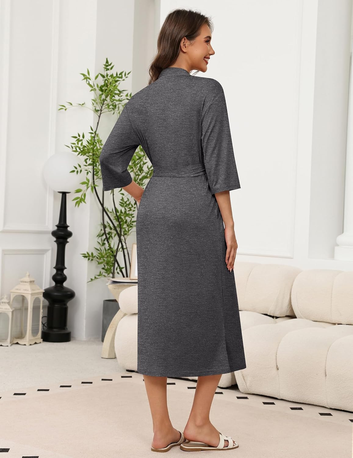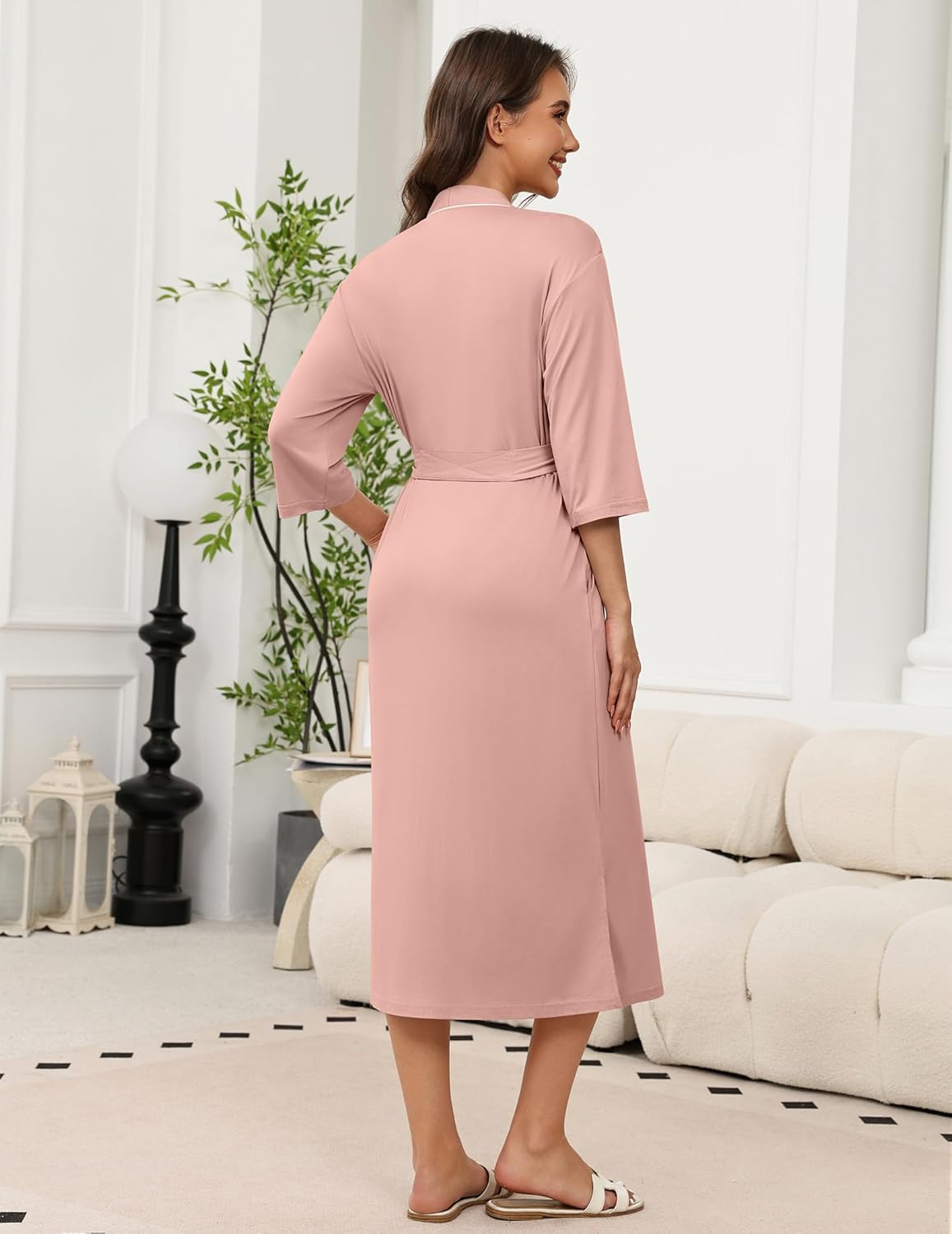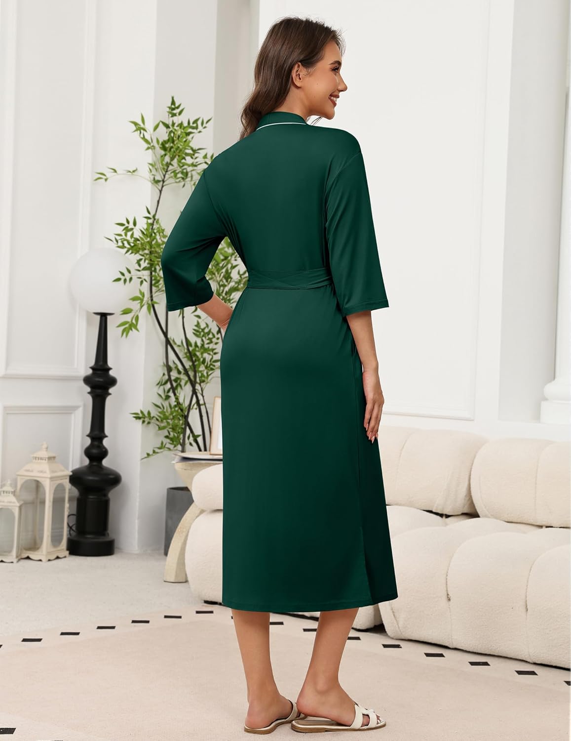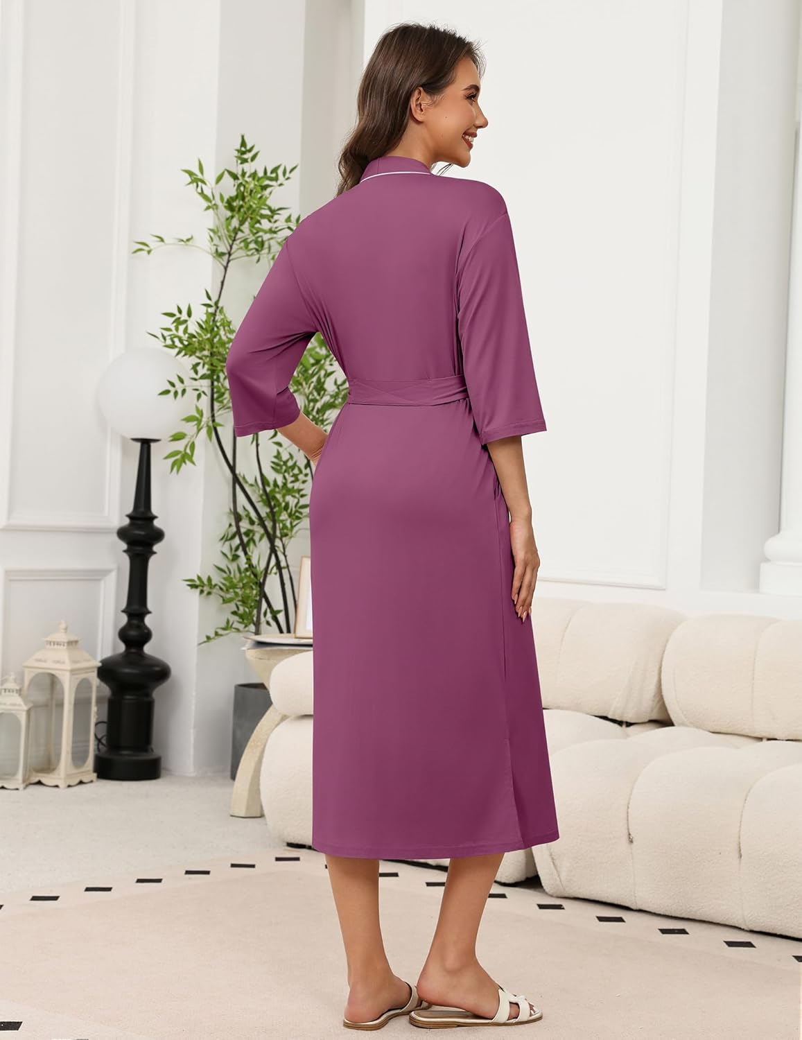 • Features: The contrasting color edges make this lightweight robe stand out. In addition, the long housecoat features 3/4 sleeves and a side-slit hem. The two side pockets (fit phone/snacks).