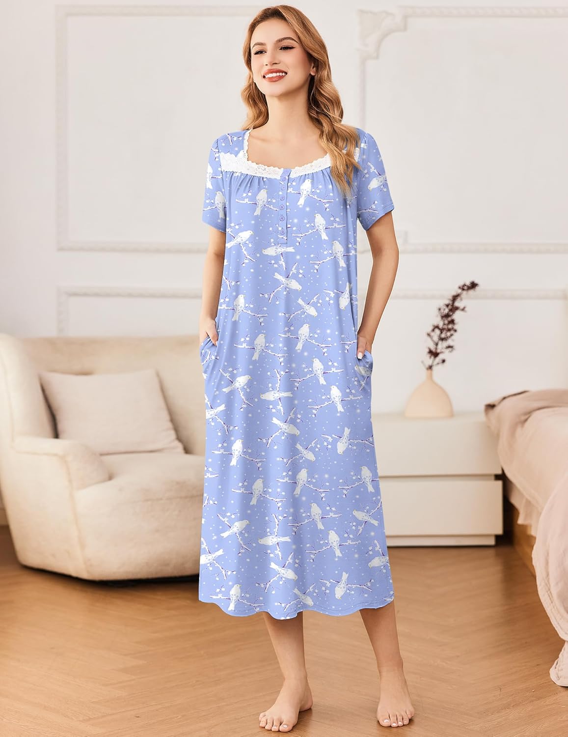 • House dress with pockets for convenience are deep enough to hold your phone and keys; buttons front sleep dress making it easier to put on and take off.