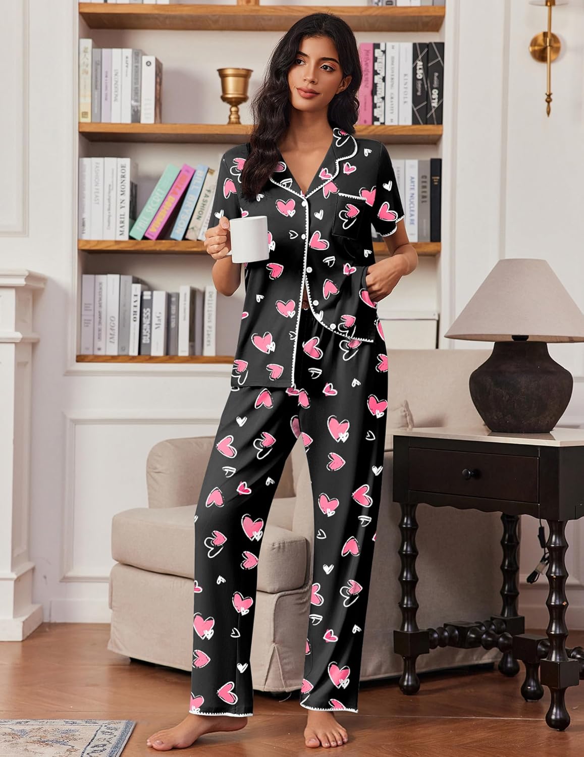 Button Up Soft Pjs Short Sleeve 2 Piece Lounge Sets