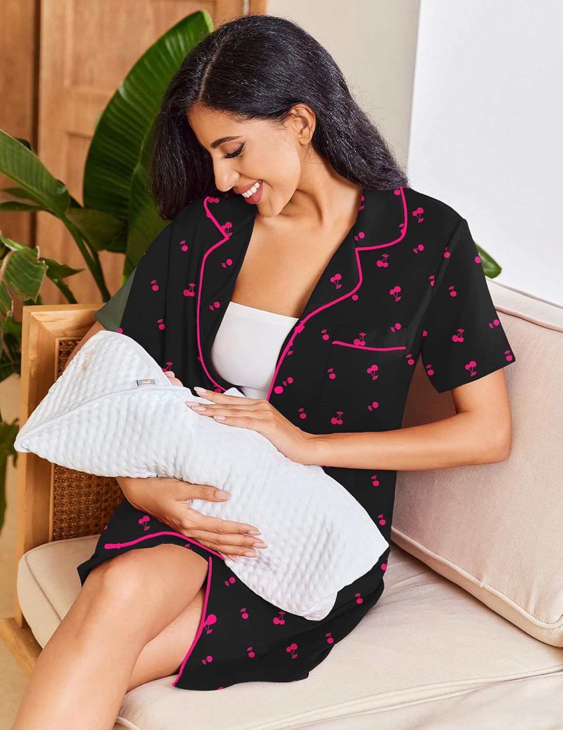 Button Down Night Gowns Short Sleeve Sleepshirt