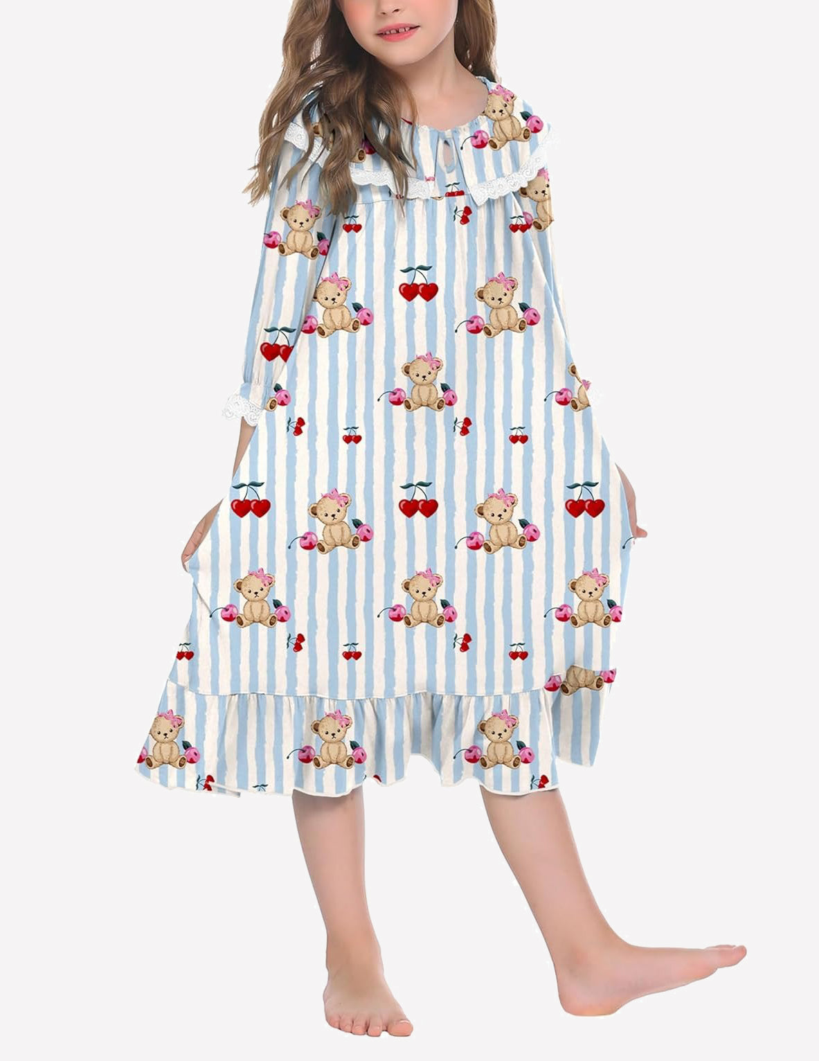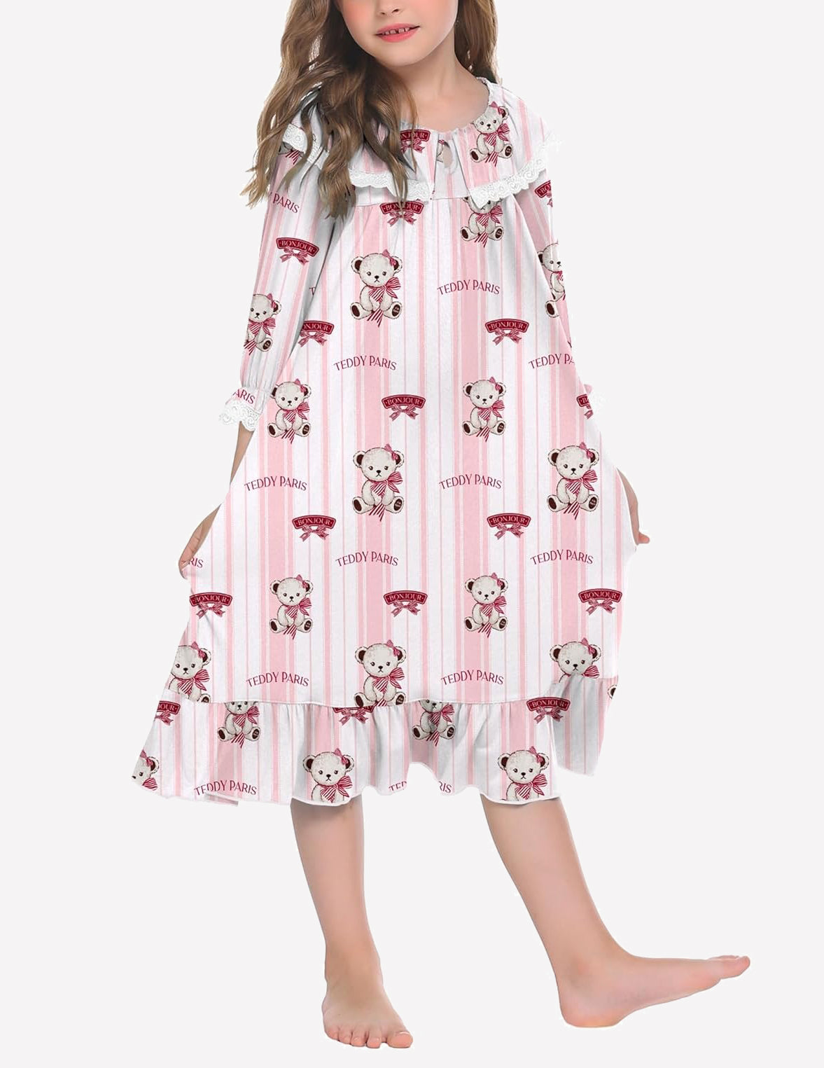 Versatile Style: Available in both solid colors and playful prints, the version of this cute girl’s nightgown is generous and playful, which fits for all seasons. Little girls will feel like princesses in this sweet princess nightgown.
