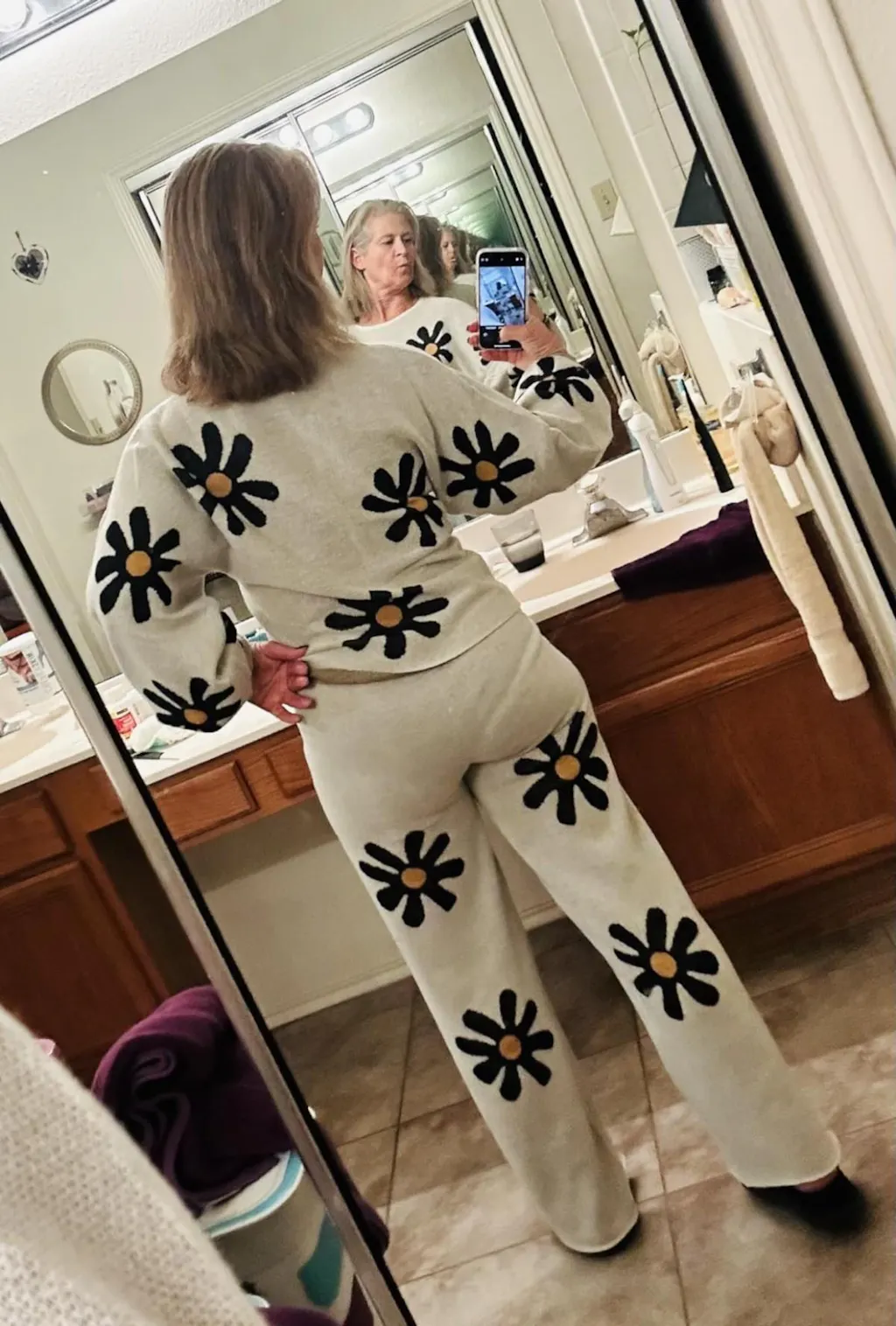 I wanted something I would feel proud to wear out to the store, to run errands, without looking like I'm wearing a track suit. I like track suits, but I wanted something more dressy. I bought this lounge set and am very happy with it. It's suitable for wearing in the house, but also, very elegant worn outside the house. It's slenderizing on me even though I leaped into getting the khaki color. Monochromatic look is very nice. I'm pairing with a pair of white lace up sneakers and feel great. I recommend this set.