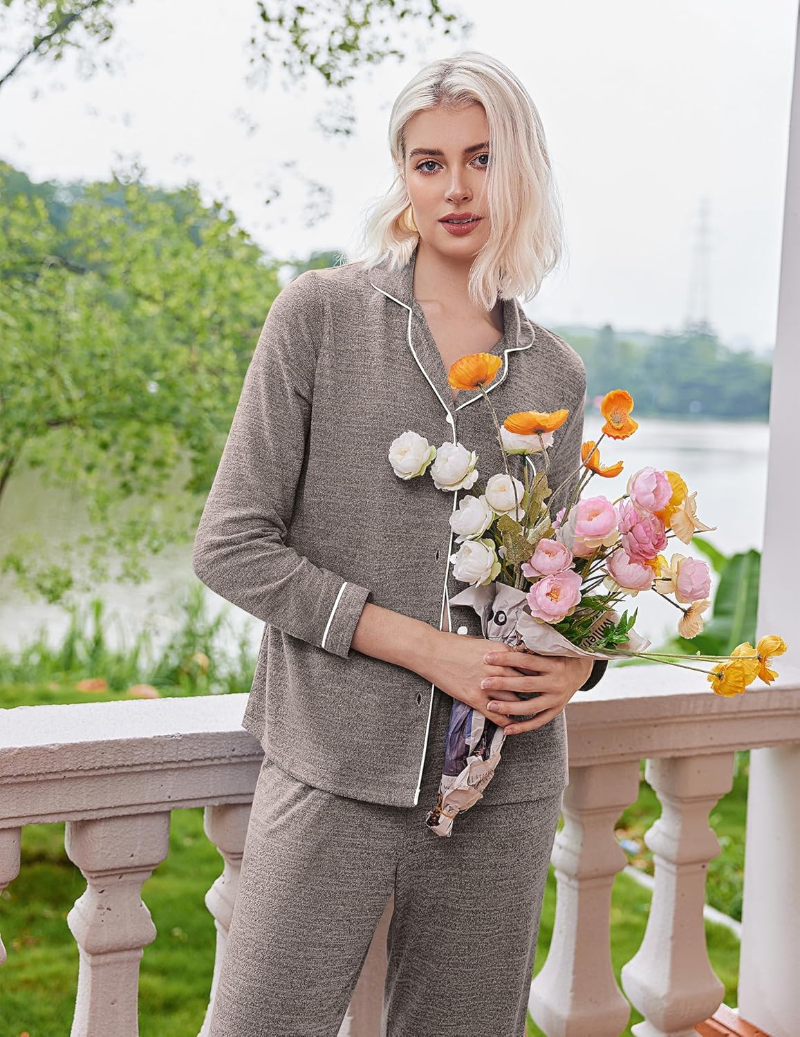 Ekouaer Women's Pajama Sets Long Sleeve Comfy Button Down Nightwear