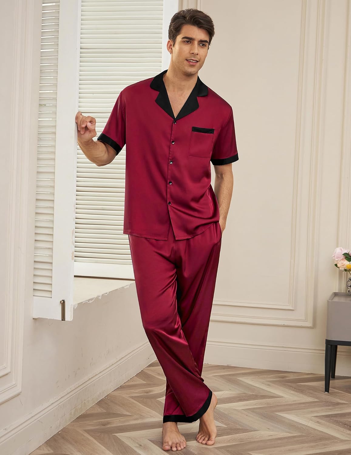 Ekouaer Men Short Sleeve Satin Pajamas Set (US Only)