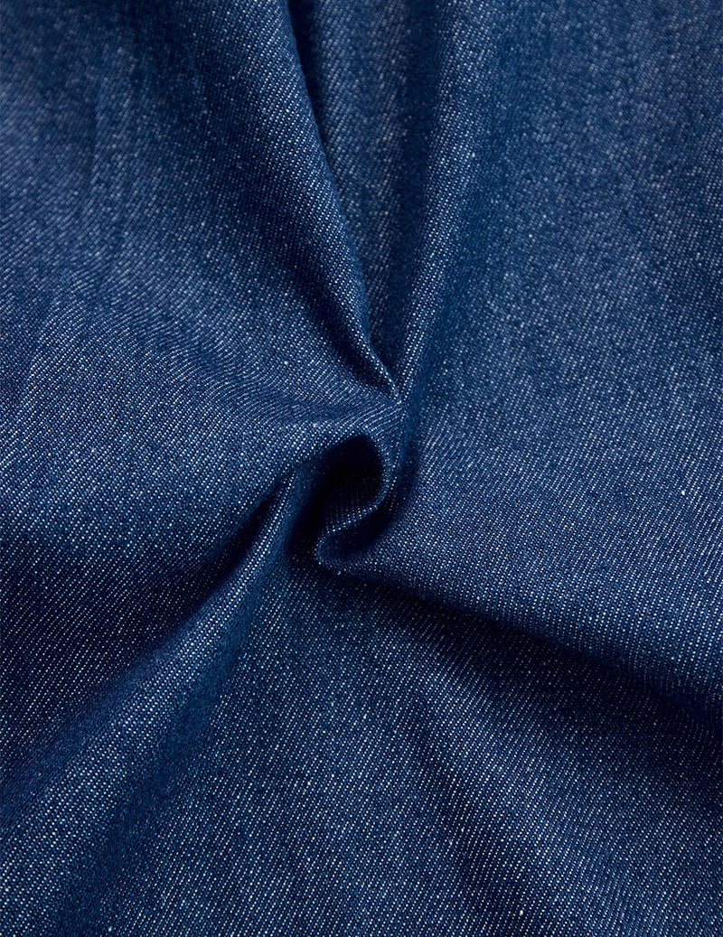 Premium rigid denim with vintage wash and subtle fading