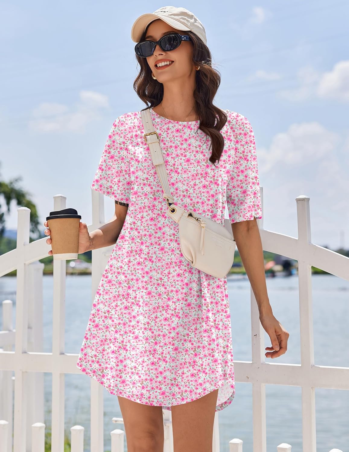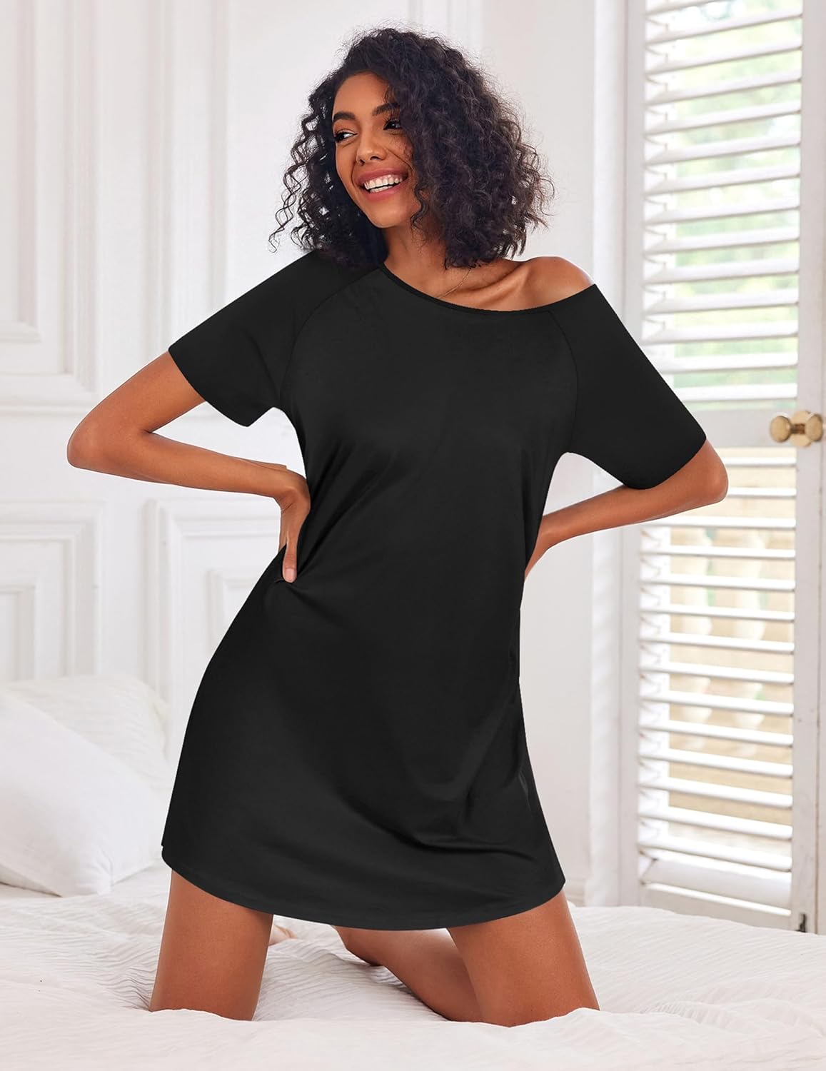 Classic Design: Ekouaer women's sleepshirt features a classic round neckline and raglan sleeves, above knee length, loose fit boyfriend style with more space, the asymmetrical cut curved hem visually elongates your figure. The simple pull-on style makes it easy to slip on and take off.