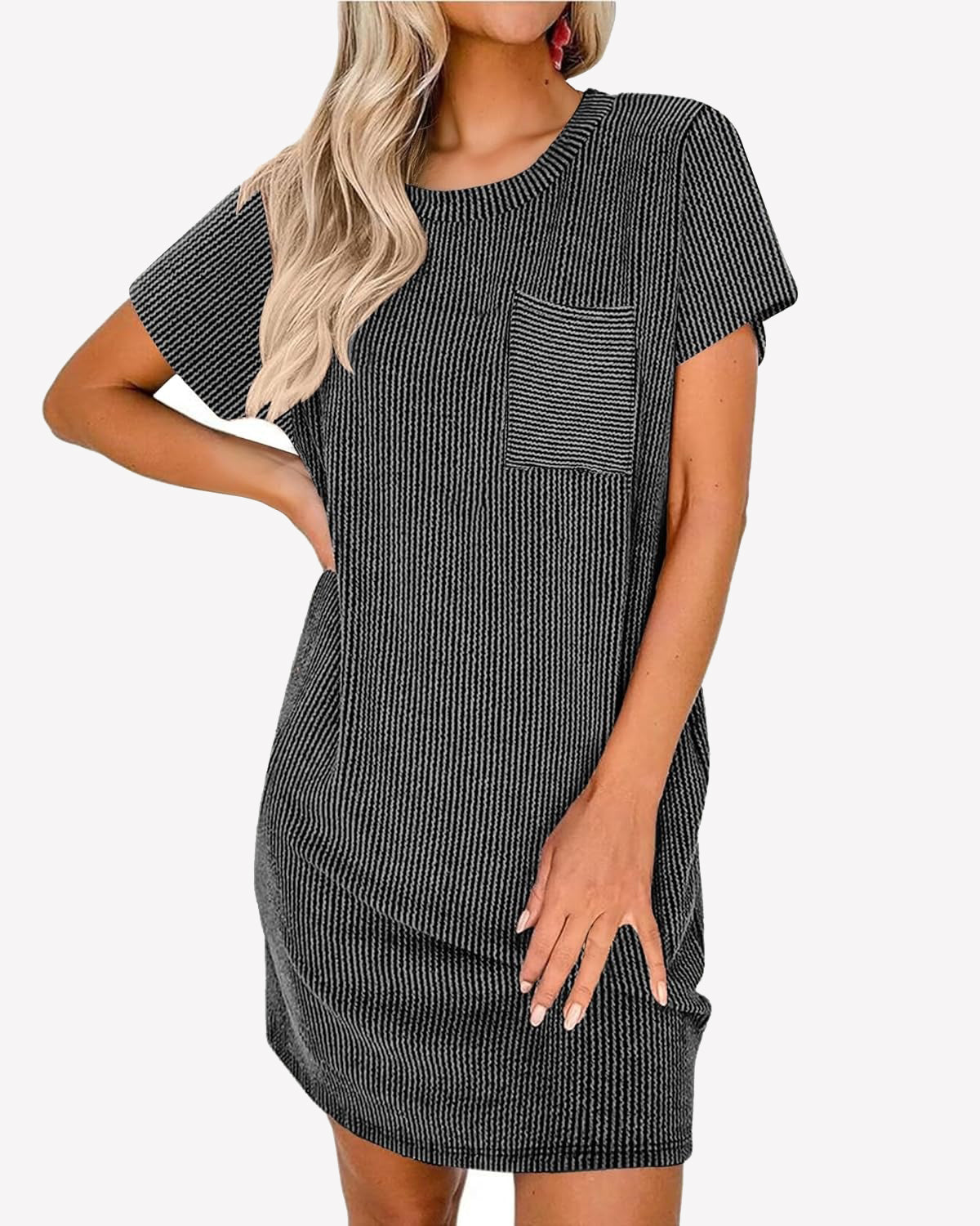 • TIMELESS CLASSIC DESIGN: This versatile nightgown features a flattering round neckline, comfortable short sleeves, and a convenient chest pocket for small essentials. The above-the-knee length offers perfect coverage while the distinctive ribbed texture adds a modern, stylish touch that elevates your loungewear game.