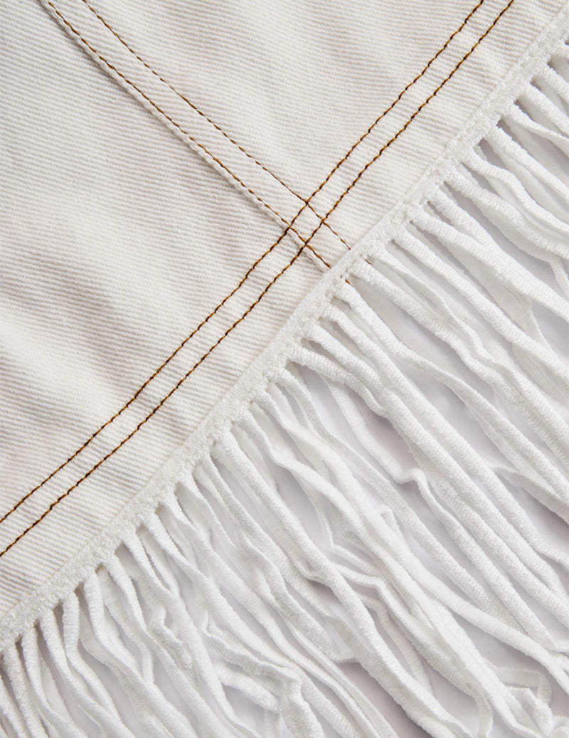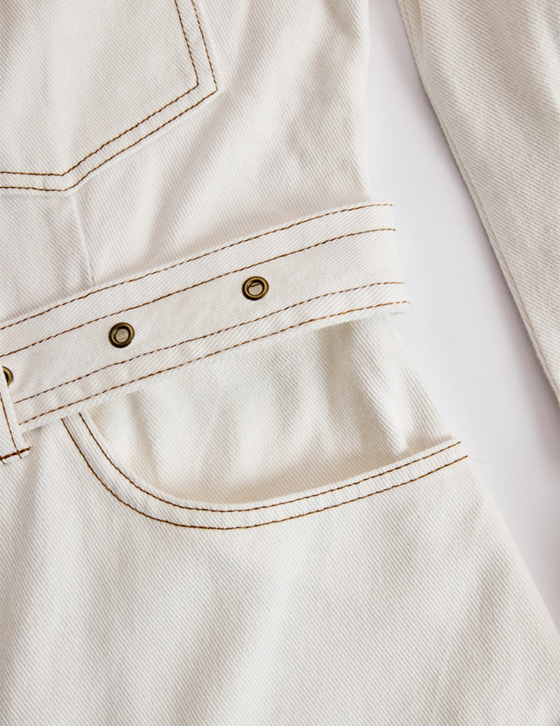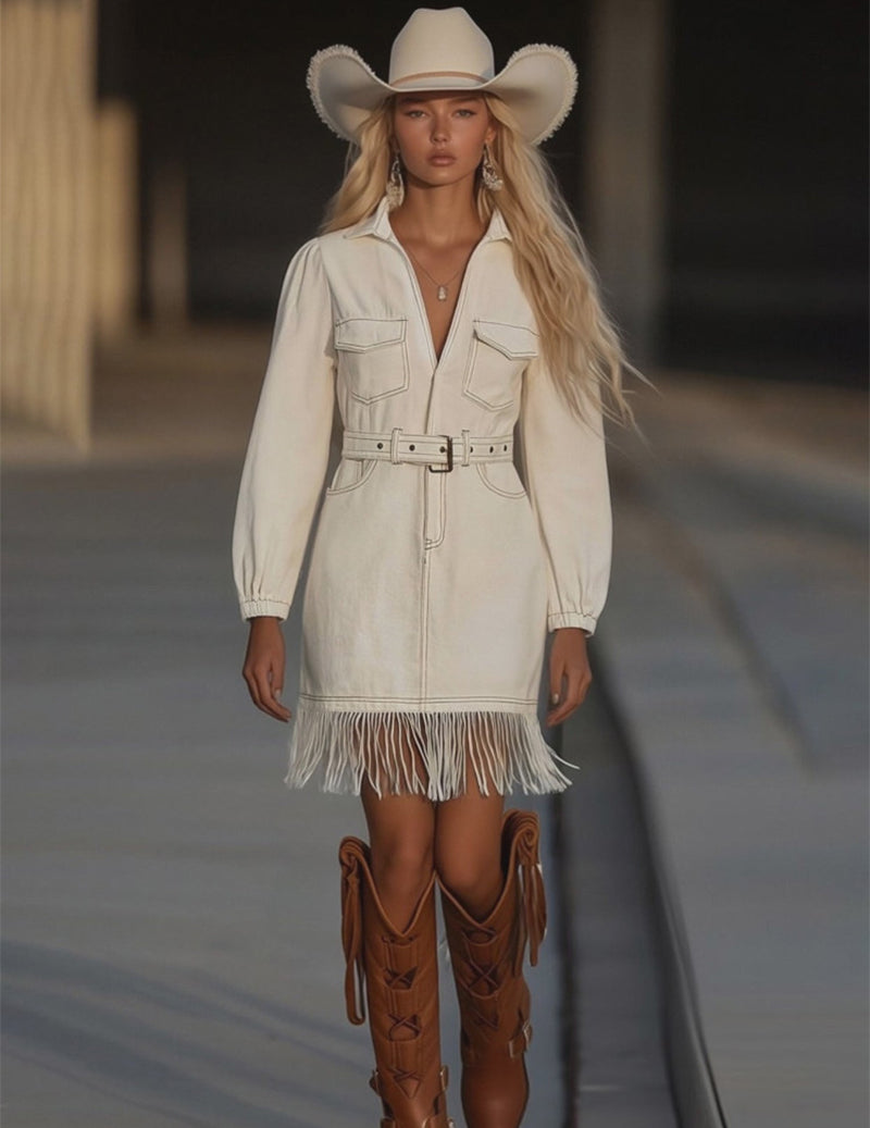 Fringed Western Denim Shirt Long-Sleeve Belted Dress