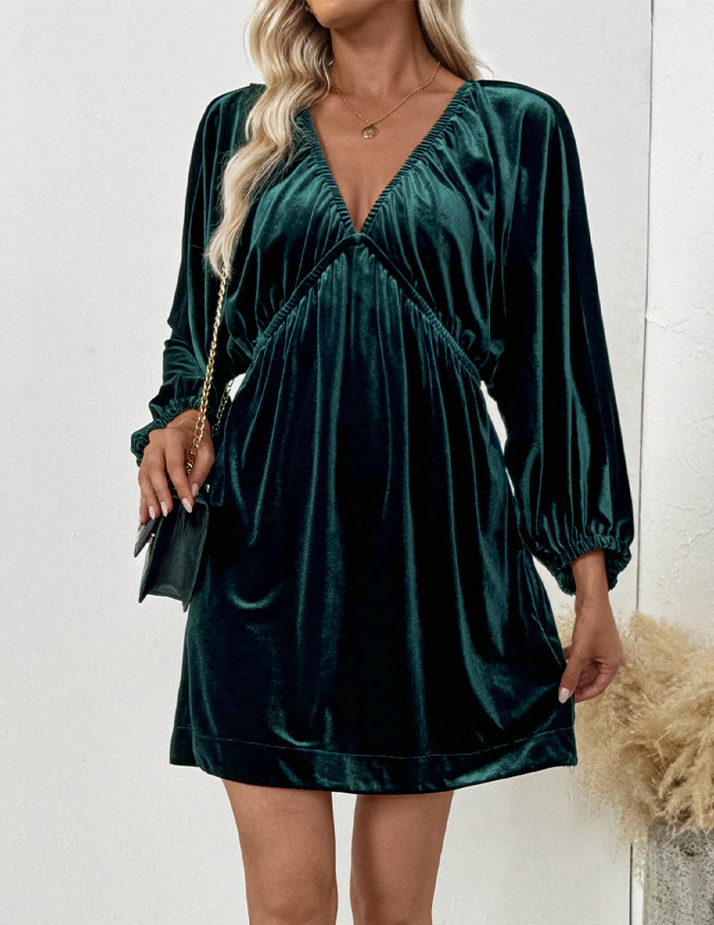 Velvet Dress 3/4 Sleeve Velour Mini Dress