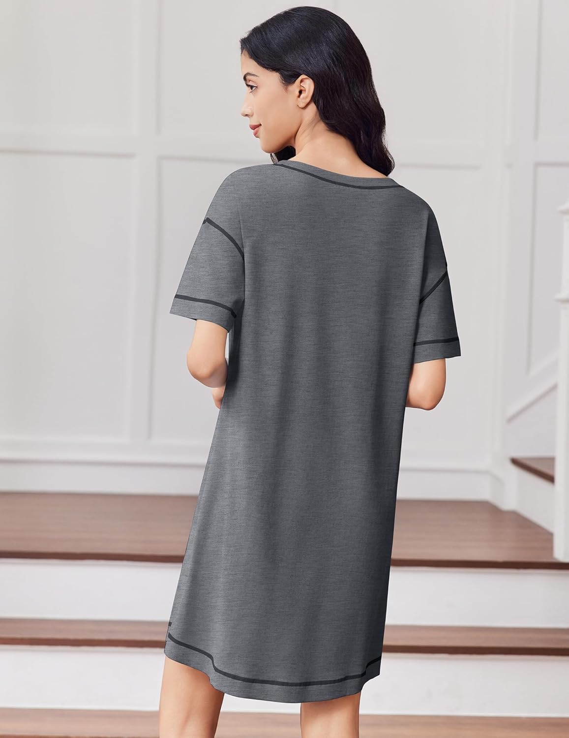 Bamboo Viscose Nightgown Short Sleeve V Neck Nightshirt
