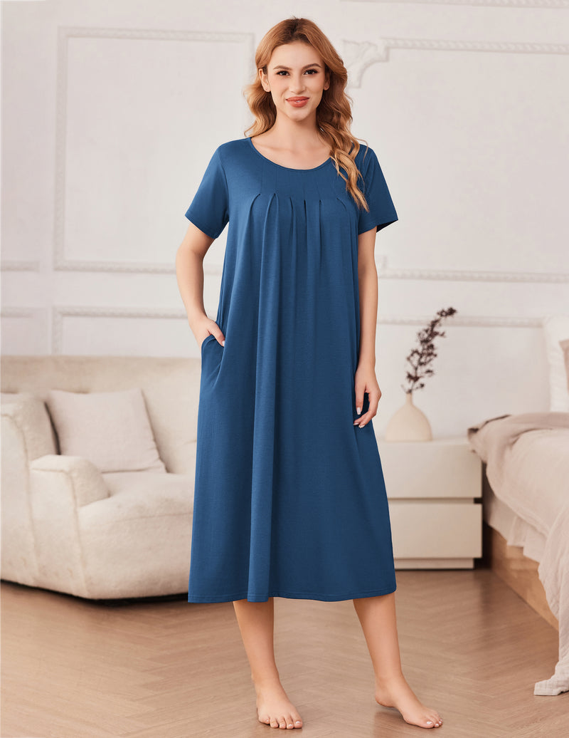 Pleated Nightshirts Short Sleeve Soft Sleepdress