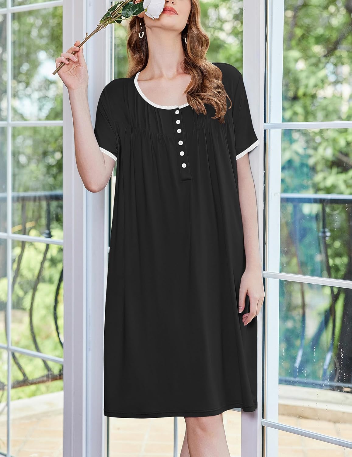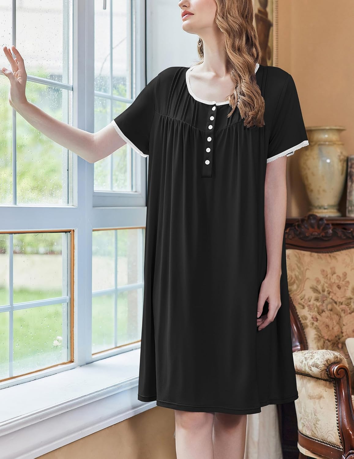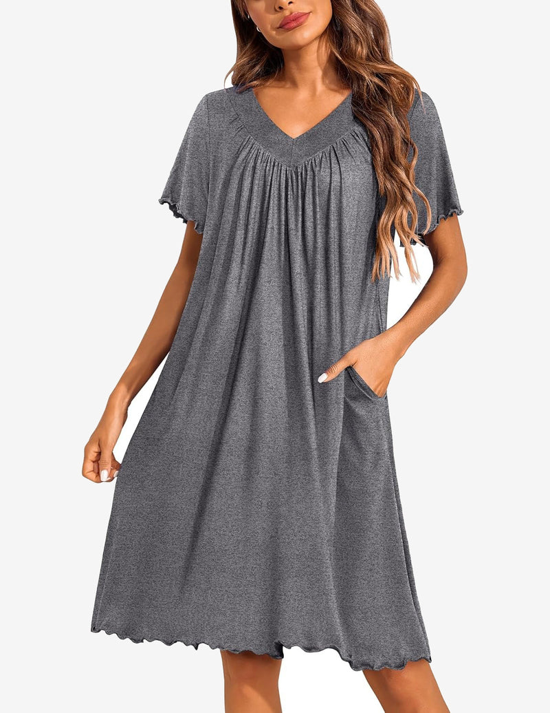 Pleated Front Nightshirt Round Neck Nightdress(NO BELT)