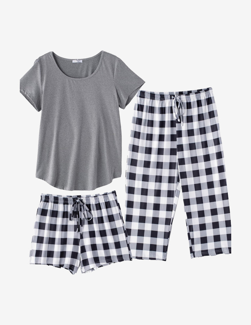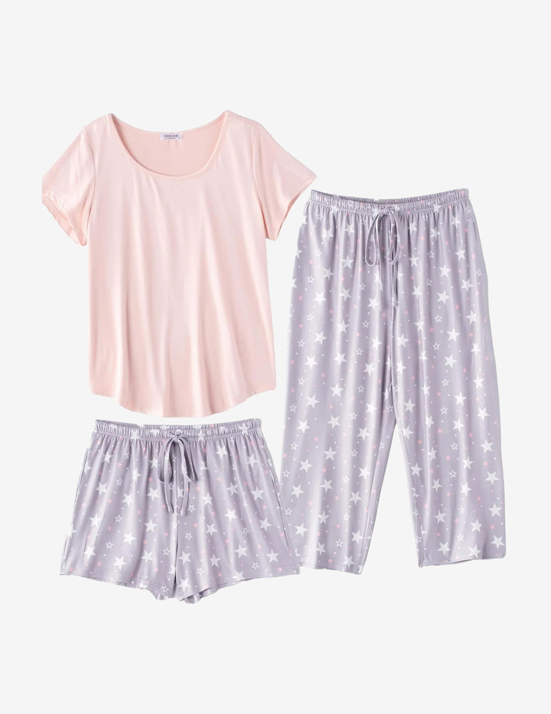 3 PCS Capri Pajamas Set Short Sleeve Floral Pajama Sets