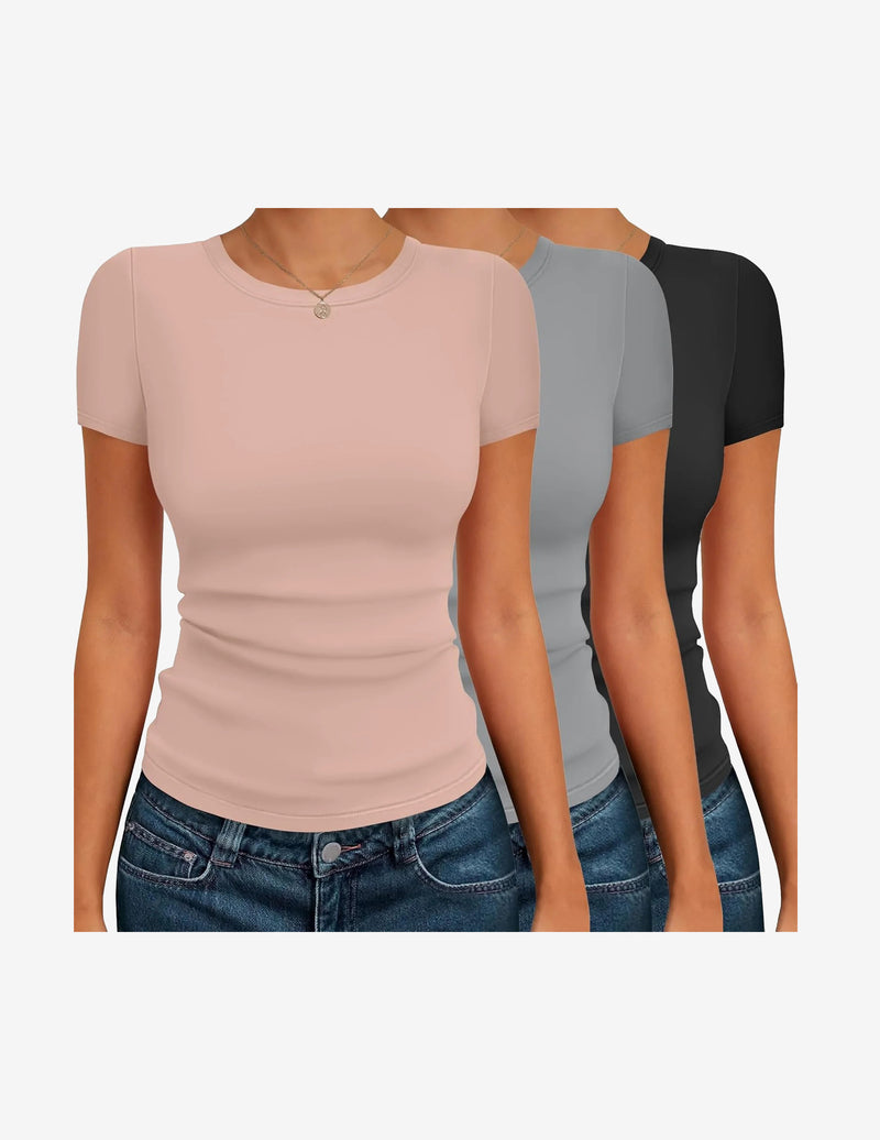 Basic Tee Shirts 3 Pack Short Sleeve Thermal Tops