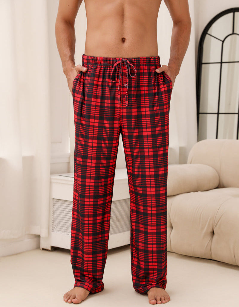 Men's Plaid Pj Lounge Pants with Pockets & Drawstring