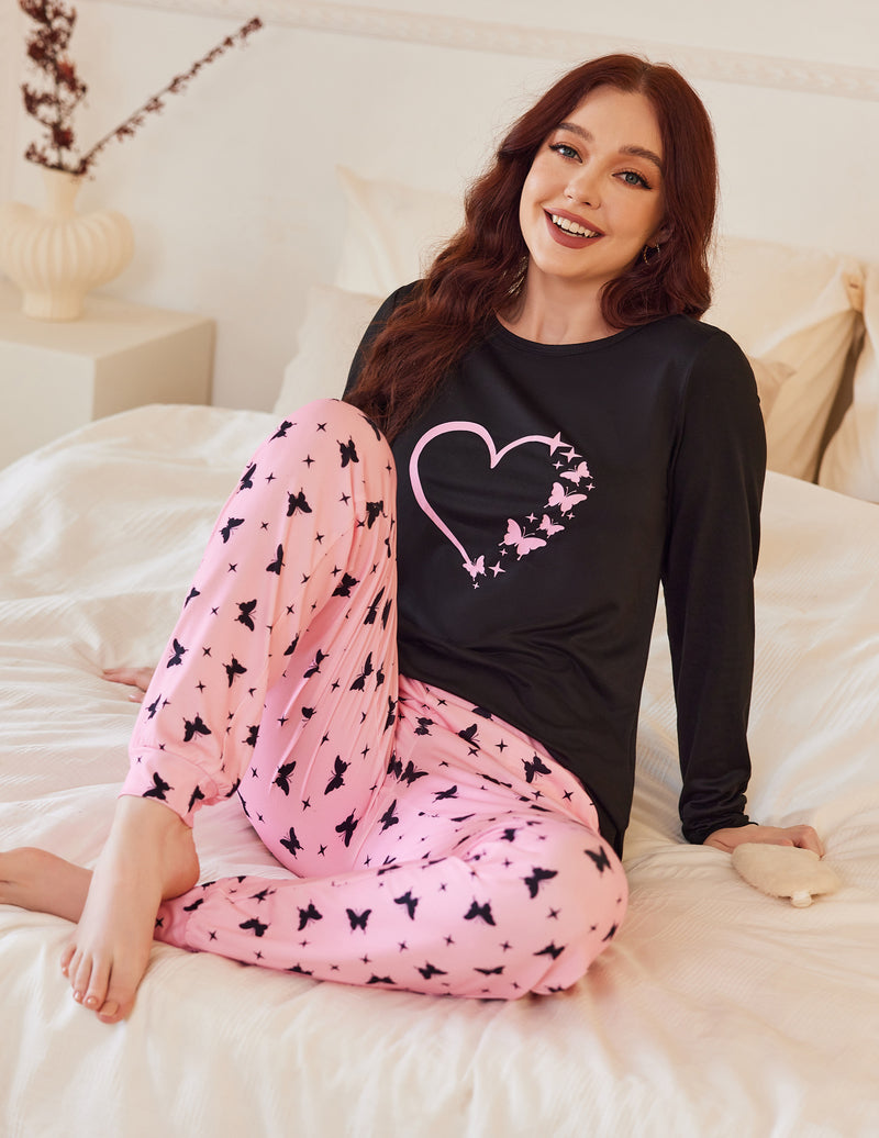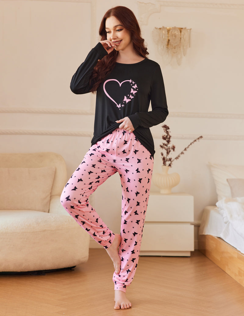 Print Tracksuit Long Sleeve Pajamas Set with Pockets