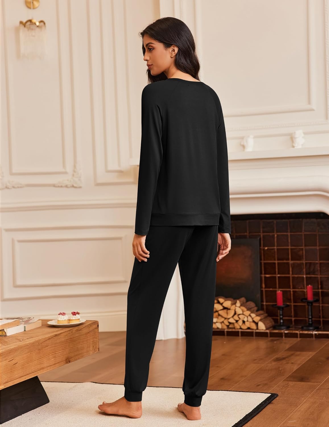 MATCHING JOGGER BOTTOMS: Long pajama pants with elastic drawstring waist and two side pockets for convenience.Elastic ankle cuffs prevent pants from rolling up during sleep, ensuring maximum comfort