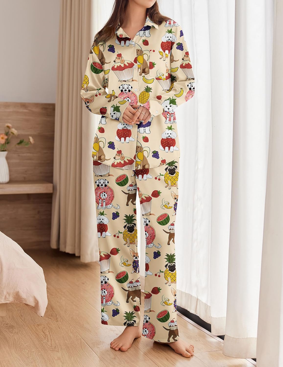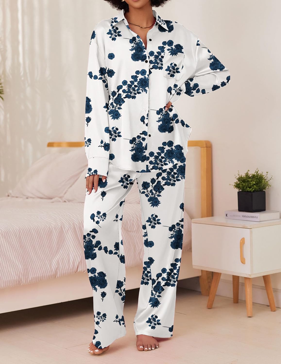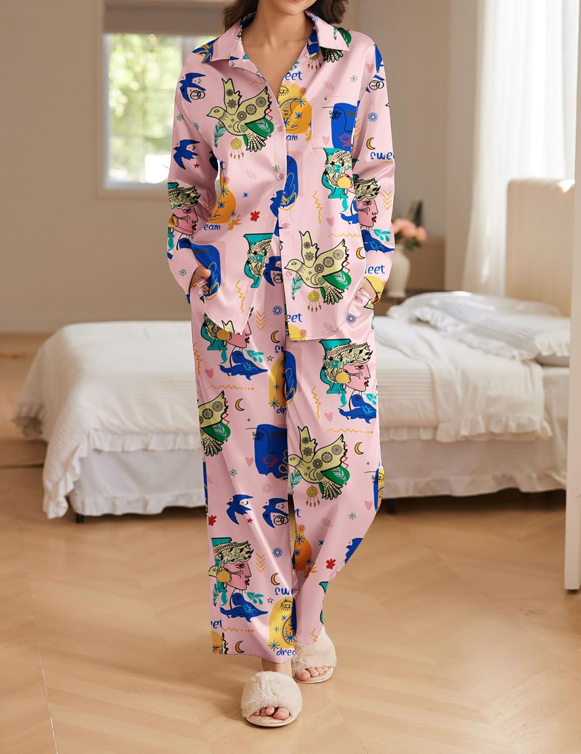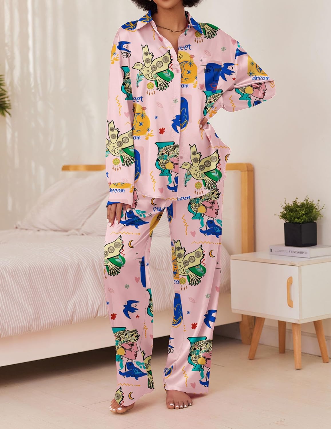 Satin Silky Pajama Set 2 Piece Soft Print PJs Loungewear