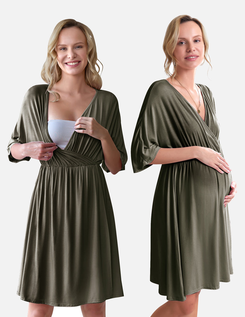 Ekouaer 3 in 1 Labor/Delivery/Hospital Gown Nursing Dress