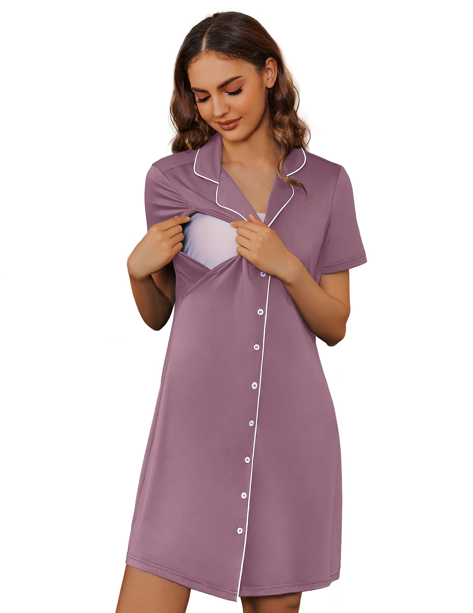 Ekouaer Nursing Nightgown Button Down V-Neck | Maternity Dress