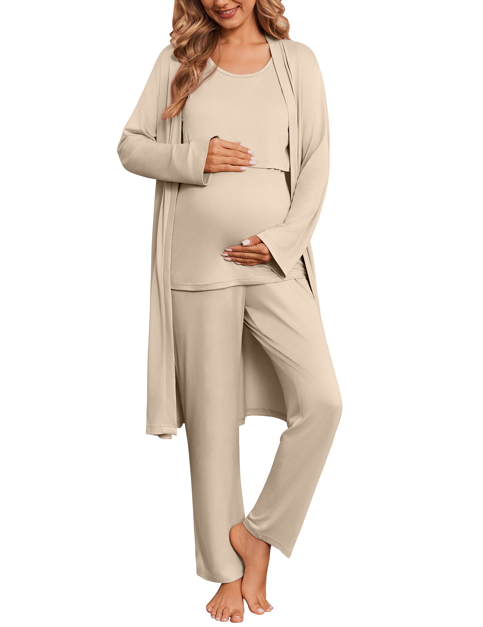 Ekouaer 3-Piece Nursing Maternity Pajama Set | Robe, Tank Top & Pants
