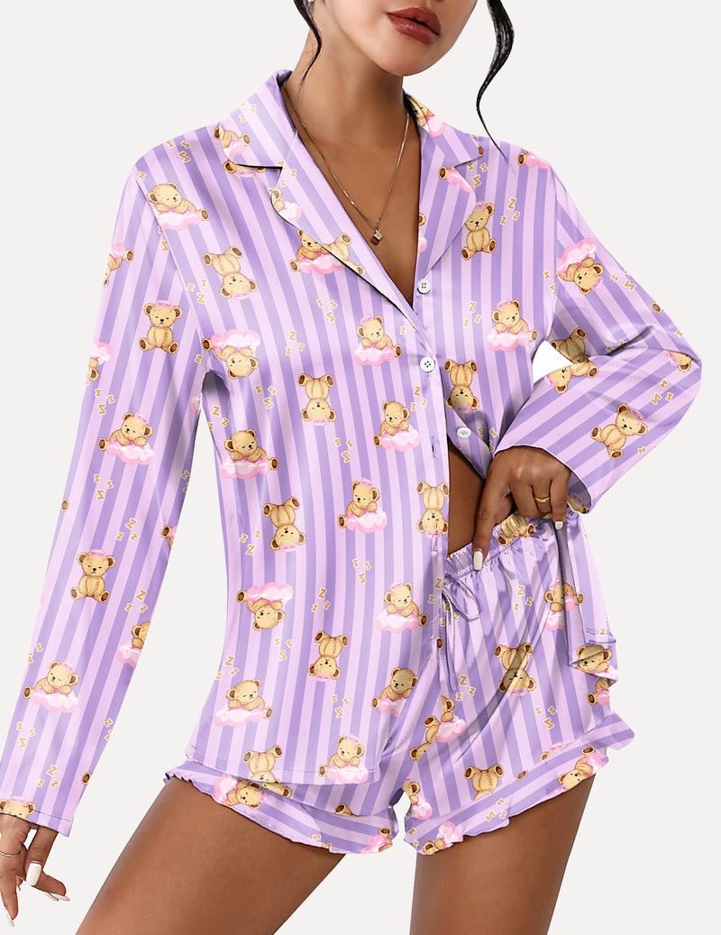 TEDDY Satin Ruffled Long Sleeve Pajama Set (US Only)