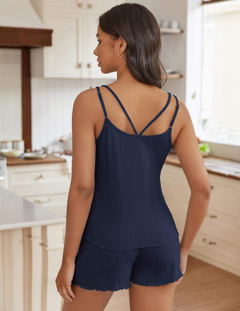 TEDDY 2 Piece Ribbed Knit PJs Tank Top and Shorts Set