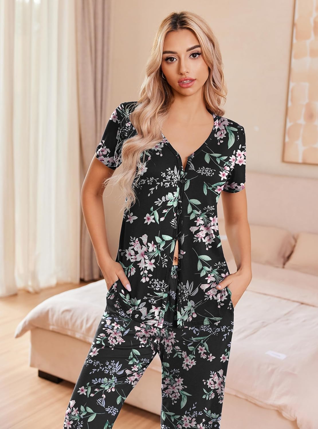 Pajama Sets Button Up Top and Capri Pants