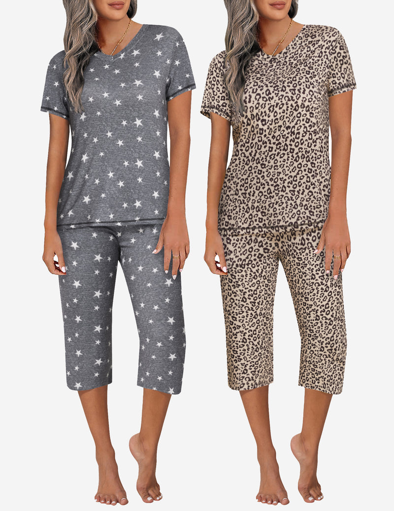 2 Pack Pajama Sets Tops & Capri Pants Lounge Sets