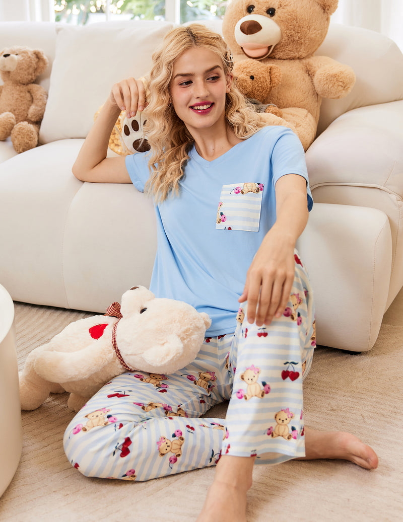 Cotton Soft Pajamas Set Short Sleeve Pjs Set