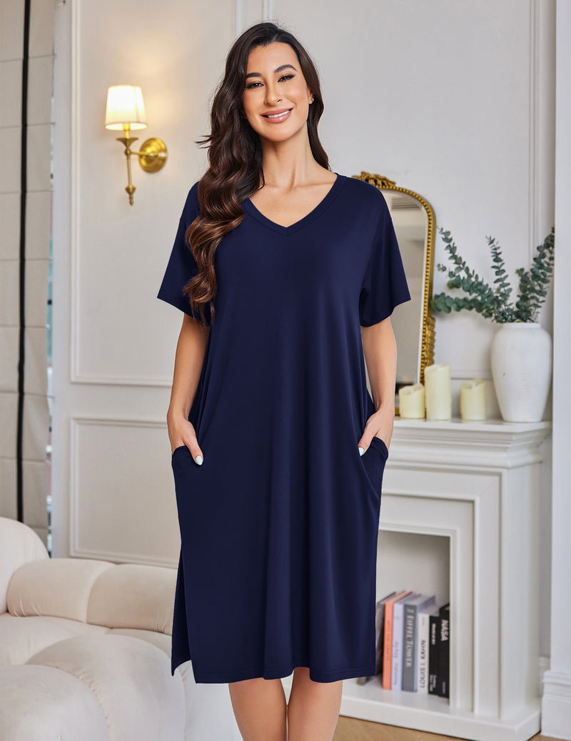Plus Size Nightgown Bamboo Viscose Sleep Dress with Pockets