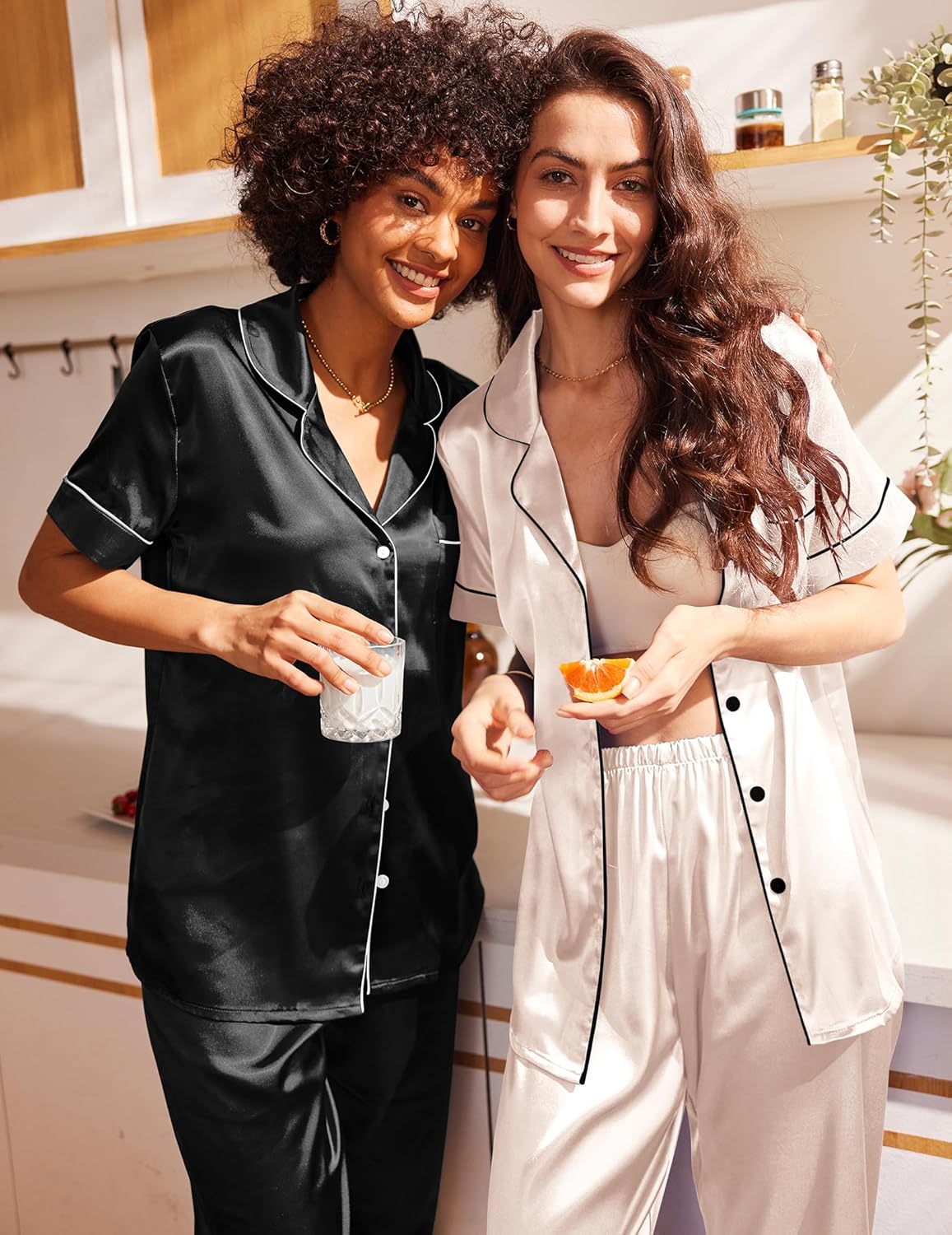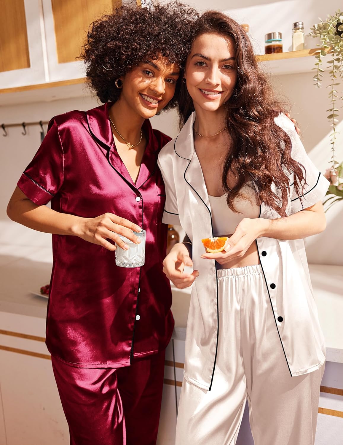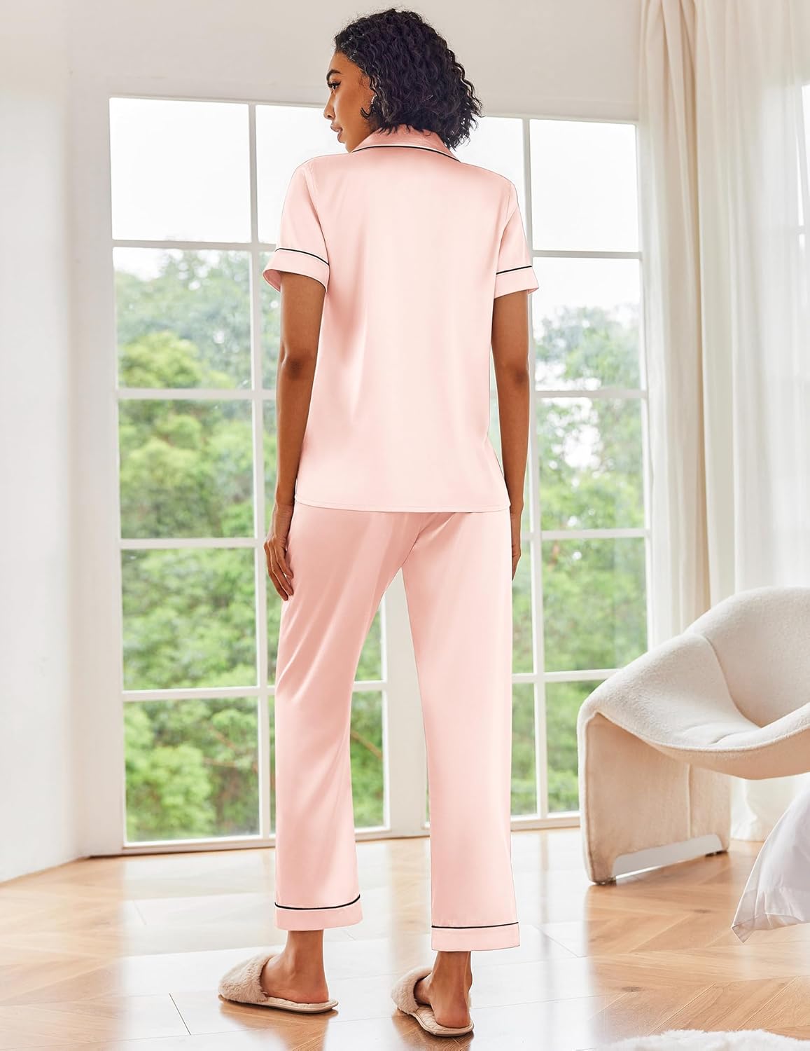 Ekouaer Satin Pajamas Set Short Sleeve Soft Pjs Set