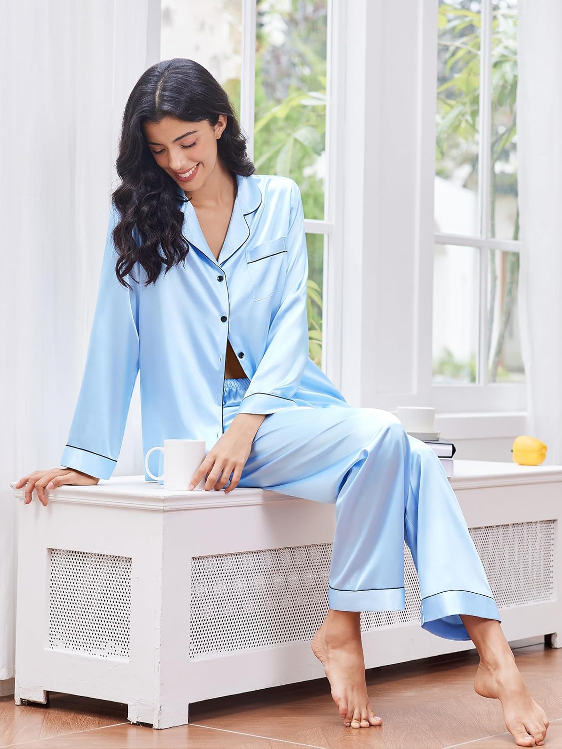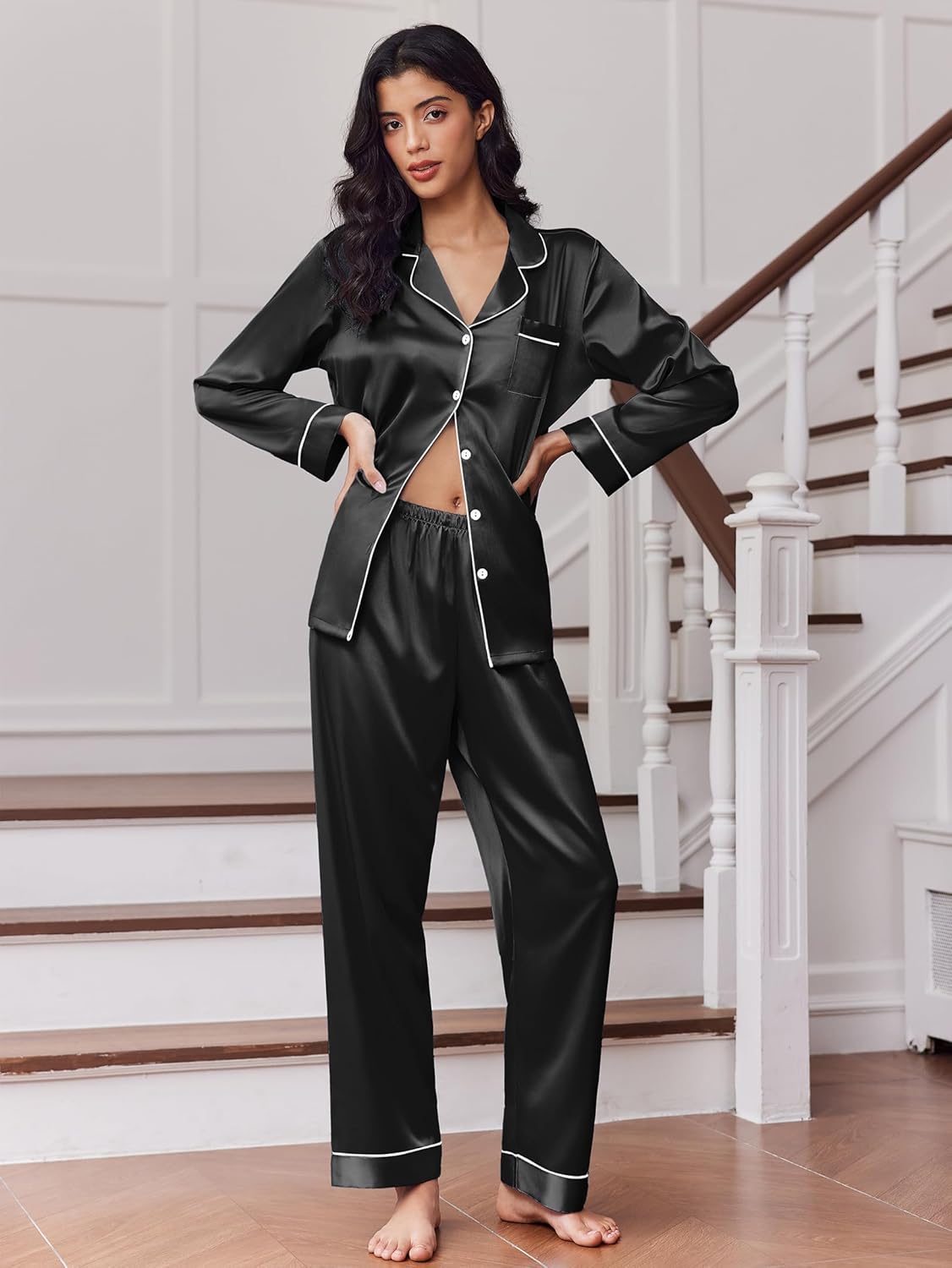 2 Pack satin pajama set for women are crafted from premium satin that feels cloud-soft as it glides over your skin.Use soft,breathable,lightweight and skin-friendly fabric,not easy to deform and pill,bring you the ultimate home experience.