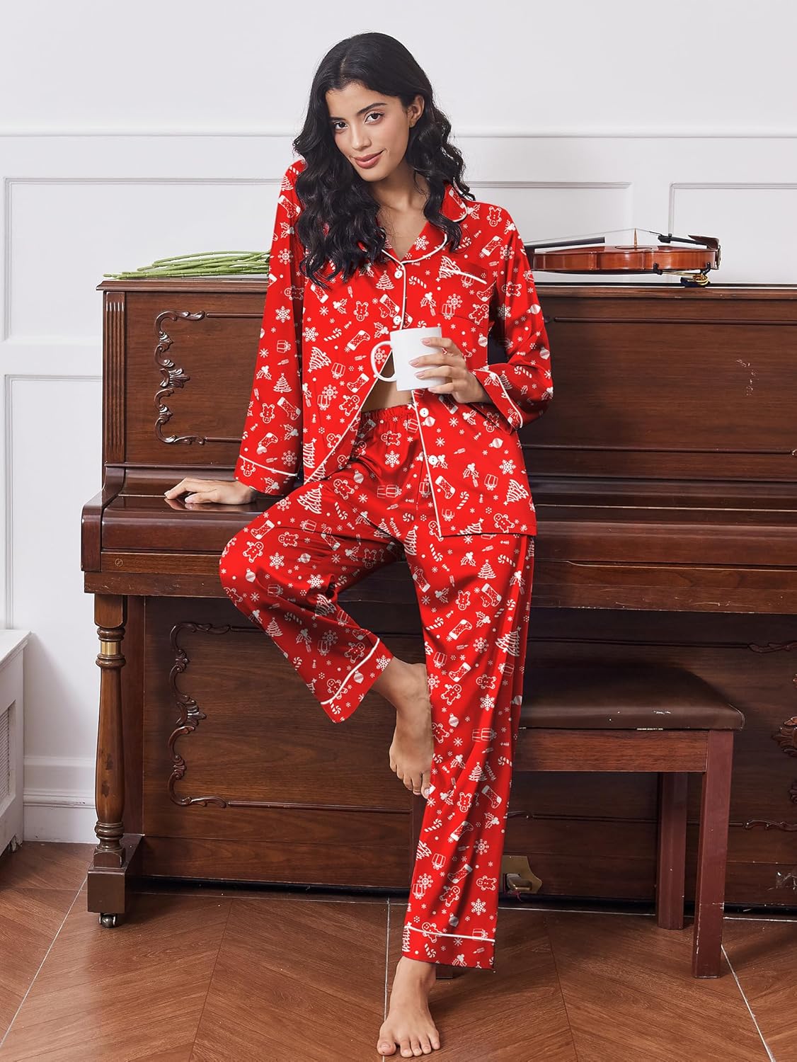 Ekouear 2 pack silk pajama set feature a classic notch collar,button down,chest pocket,elastic waist,contrast piping on placket,pockets,cuffs,and pants hem for a chic finish.Cute print,loose casual sleep sets,it is a must-have pajamas for your wardrobe.