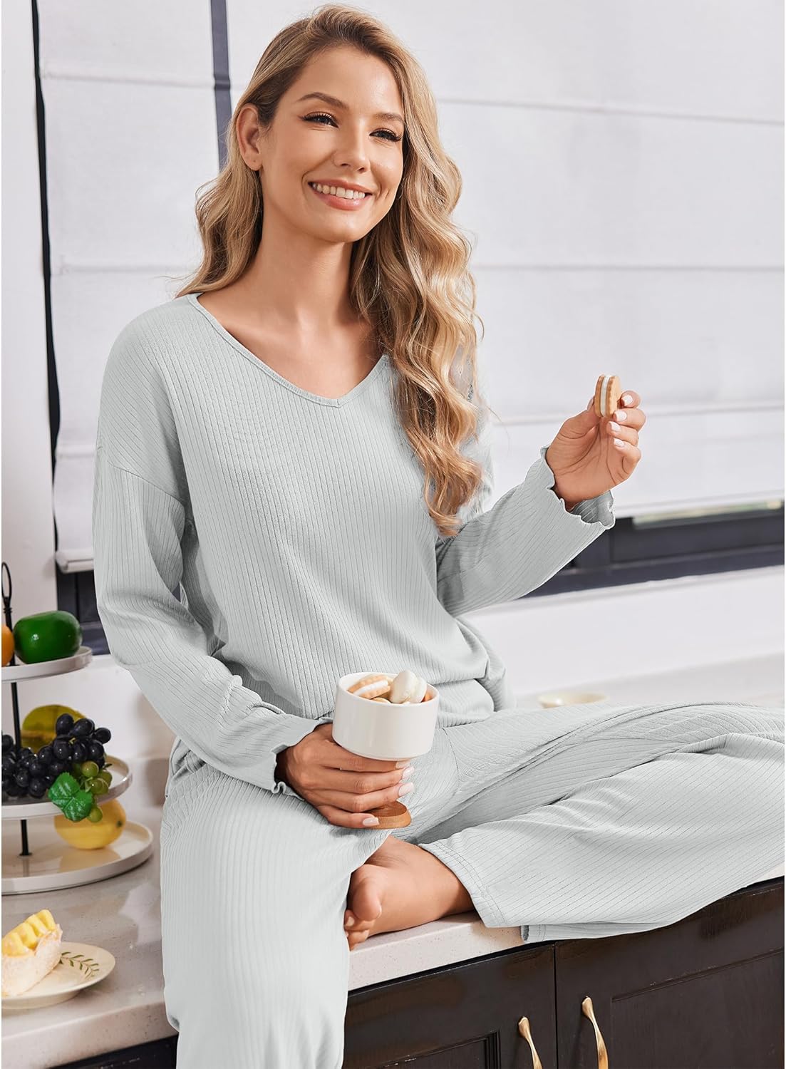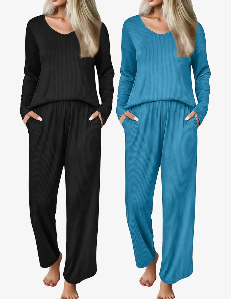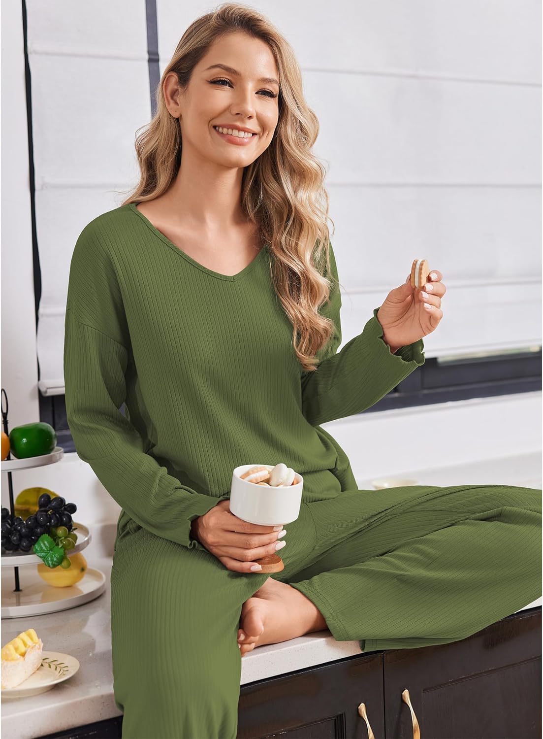 Super comfortable pajamas sets are very suitable for sleeping at home, pajamas parties, yoga and so on; Fashion rib knitted outfits sets are also suitable for daily/outdoor shopping/work/walking activities.