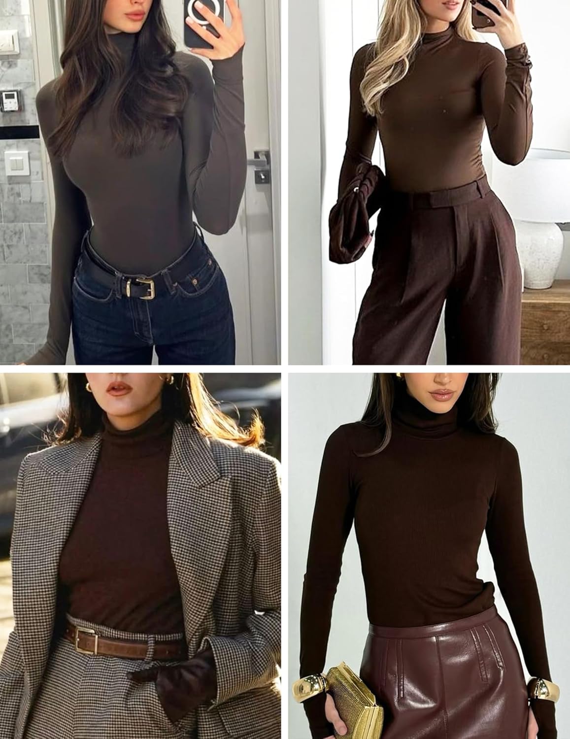 Design: This Slim Fitted Long Sleeve Tops with turtleneck design can perfect your neck,super stretchy fit that accentuate all your best figure,womens wardrobe essentials in fall and winter 2025