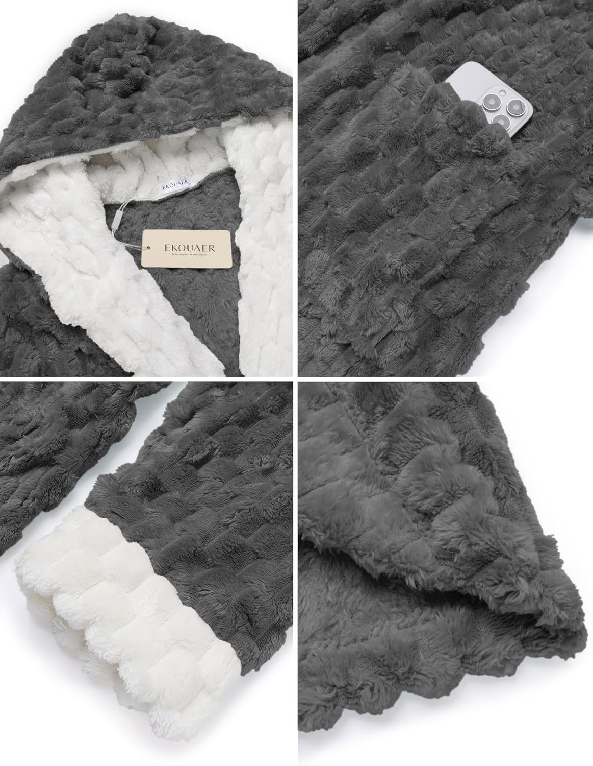 Two Pockets: Keep your hands warm and carry small items easily. Self Tie: The Fluffy Robes always fit your body and stay snug as you move around the house.