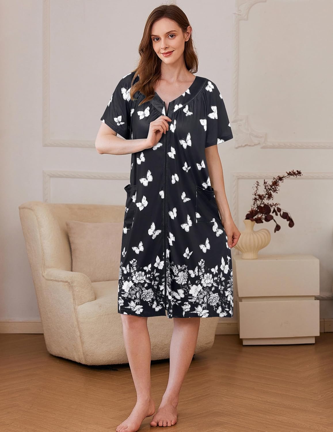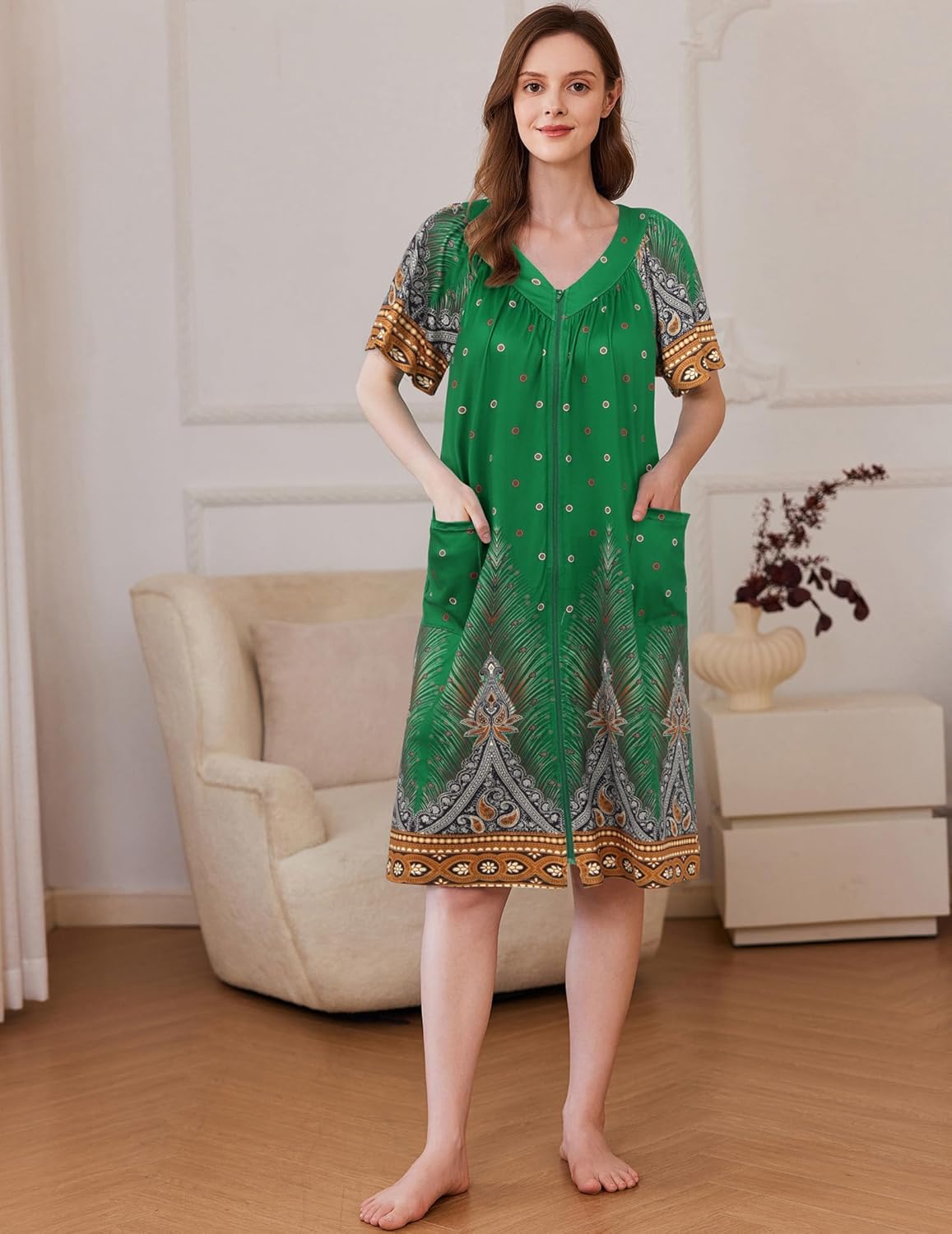 Robe Zipper Front Mumu Duster Robes Zip Up Housecoat