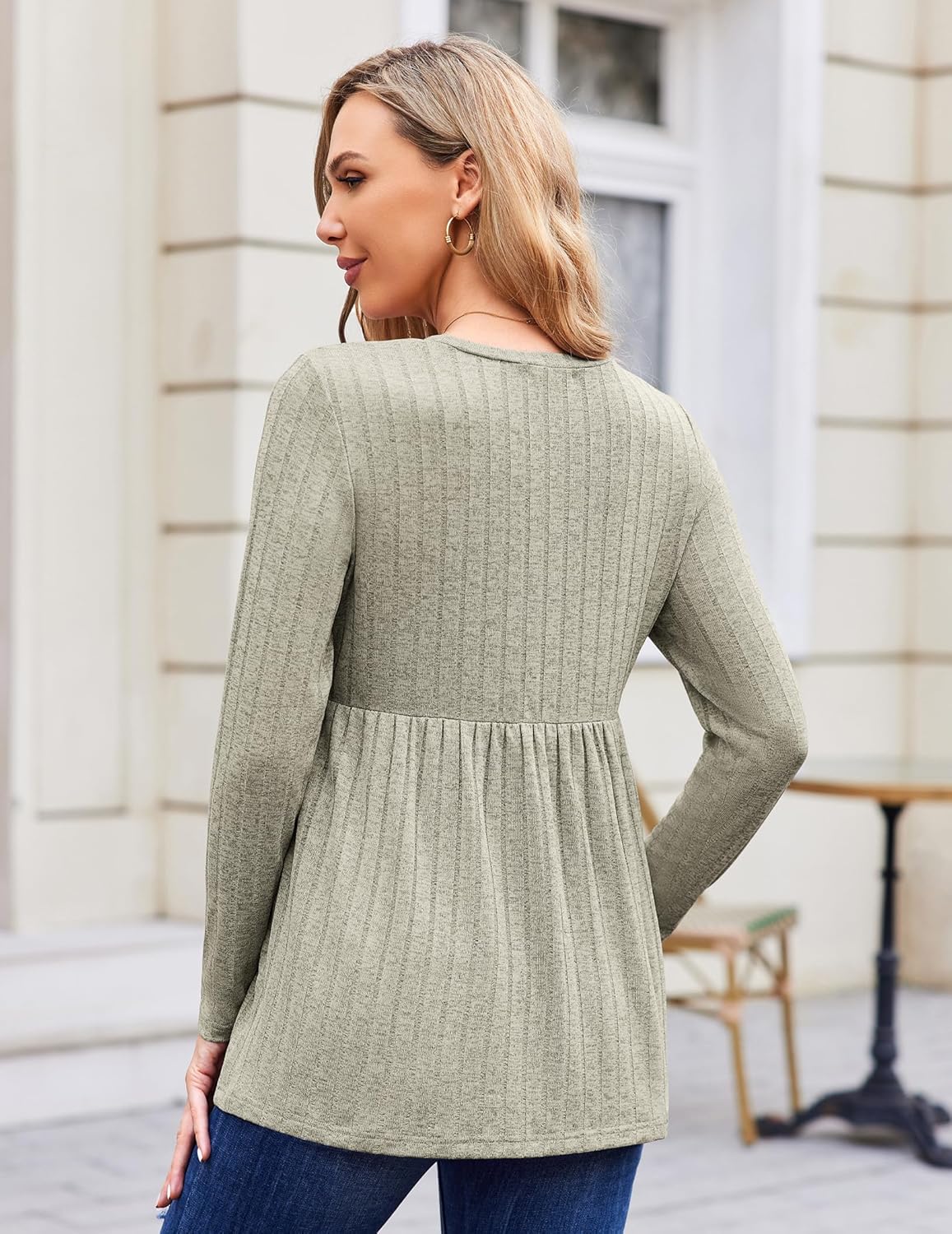 • Elegant Design: This classic crew neck pregnancy tops is designed with long sleeved casual style. Ribbed fabric looks more elegant. The pleated waistline can fits your body well and provides enough space for the growing belly at every stage.