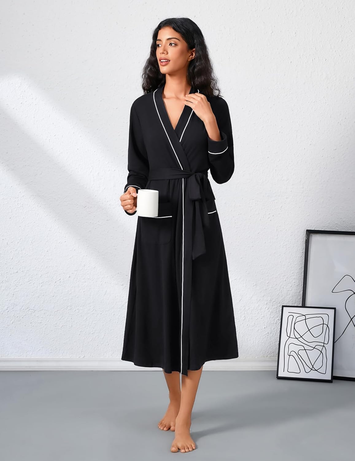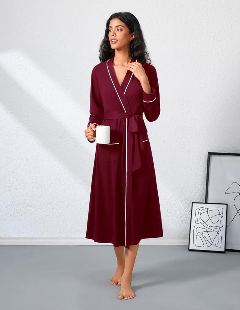 The fit is generous but flattering, and it has a mid-calf length that feels just right. It's ideal for lounging around the house or even tossing on after a shower