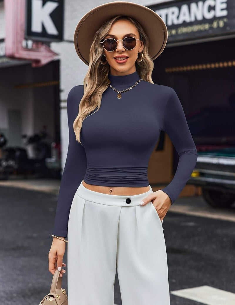 • Versatile Mock Neck Long Sleeve Shirts for Women- Mock turtleneck for women matches simply with various jeans, leather skirts, boots and high heels etc, easy to style.