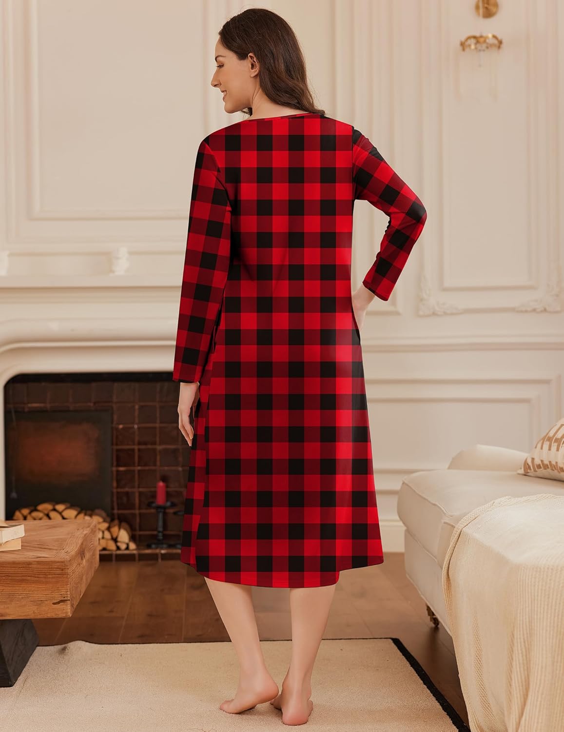 Long Button Night Gowns Full Length Sleep Dress with Pockets