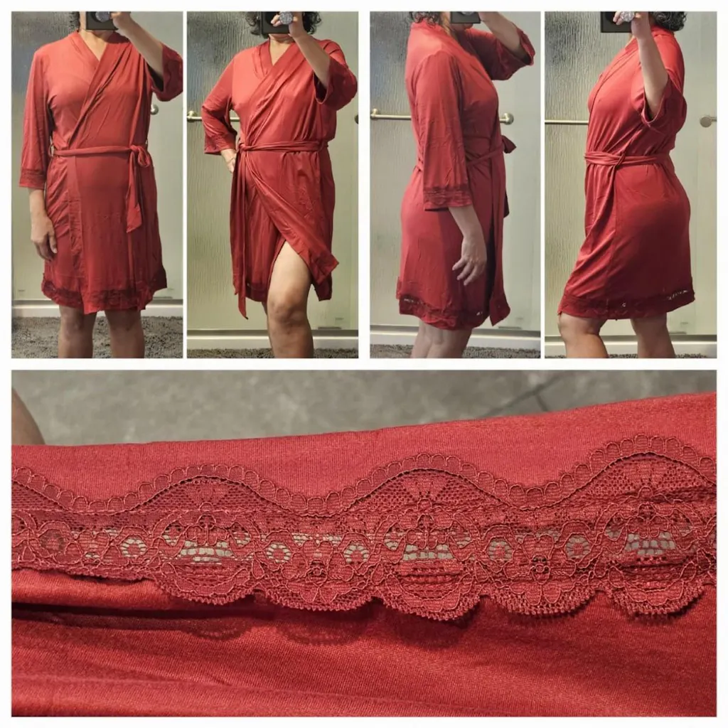I'm really happy with this robe! I ordered a 2XL, and it was true to size for my 5'8", 240 lb frame. The lightweight material is soft and comfy, and I love that there's a nice level of stretch, making it super easy to move around in. The lace details add a touch of elegance, making it feel special for lounging at home. Definitely a great find for cozy nights in!