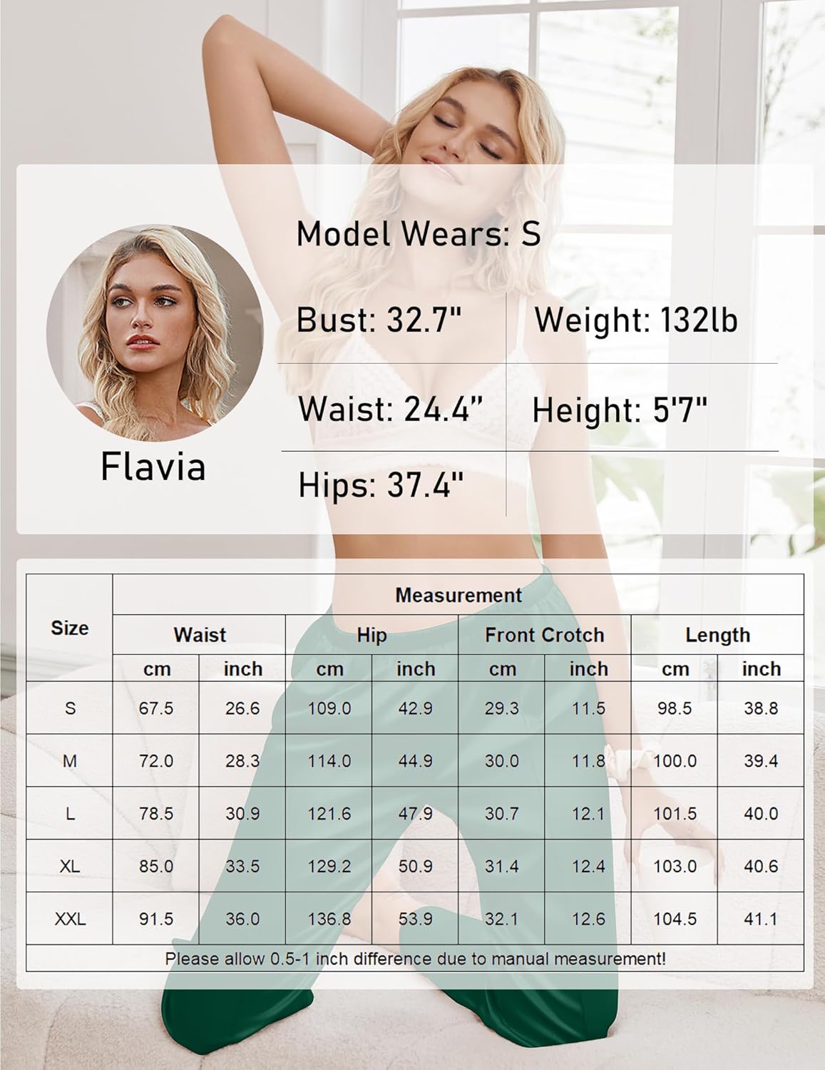 BREATHABLE: The women pajama pants are made of polyester and spandex. This lightweight and soft fabric offers great stretch for a relaxed fit. Experience the freedom of a tailored fit that ensures you stay comfortable, whether lounging at home or going about your day.