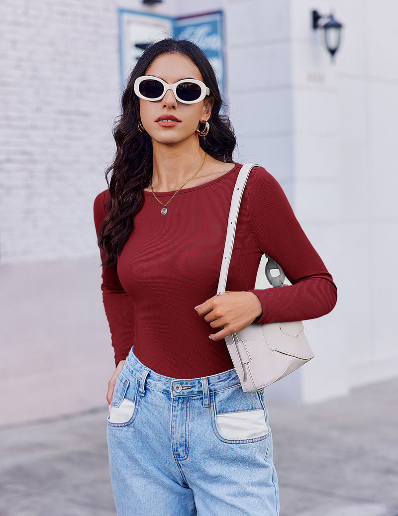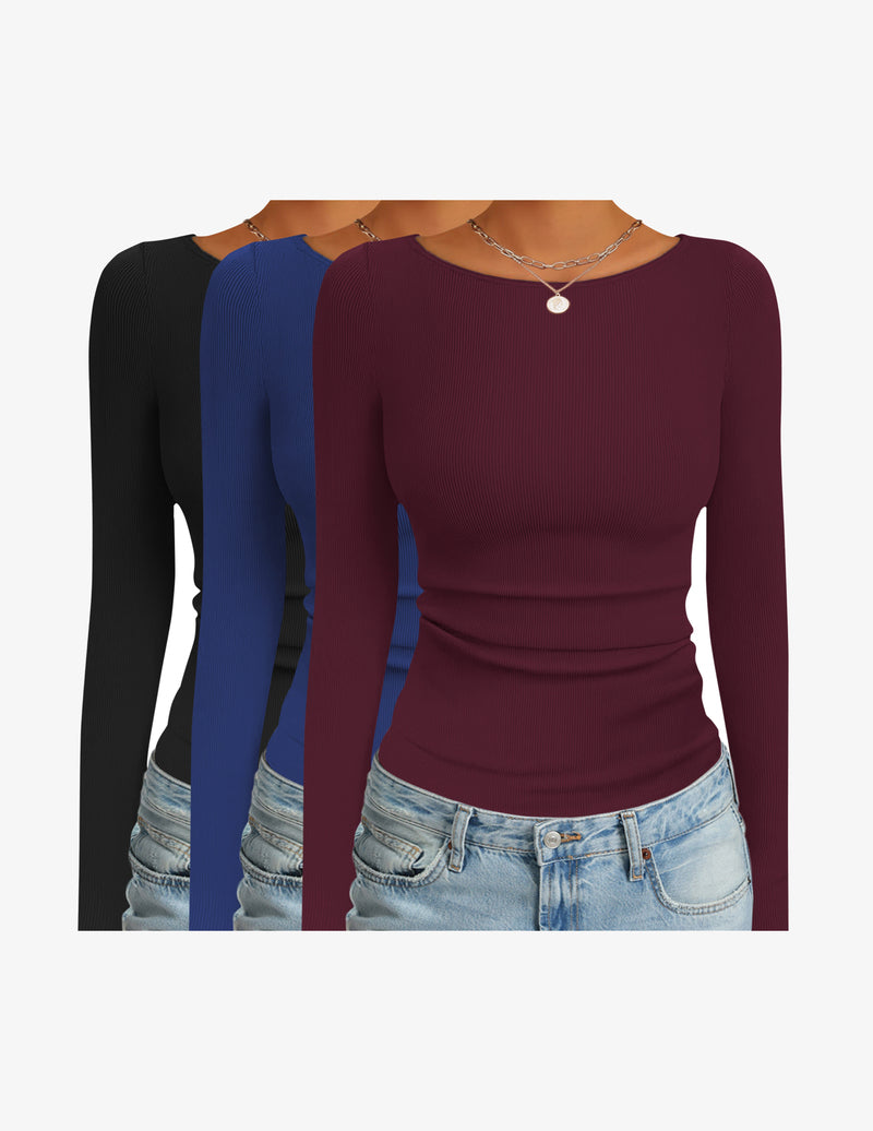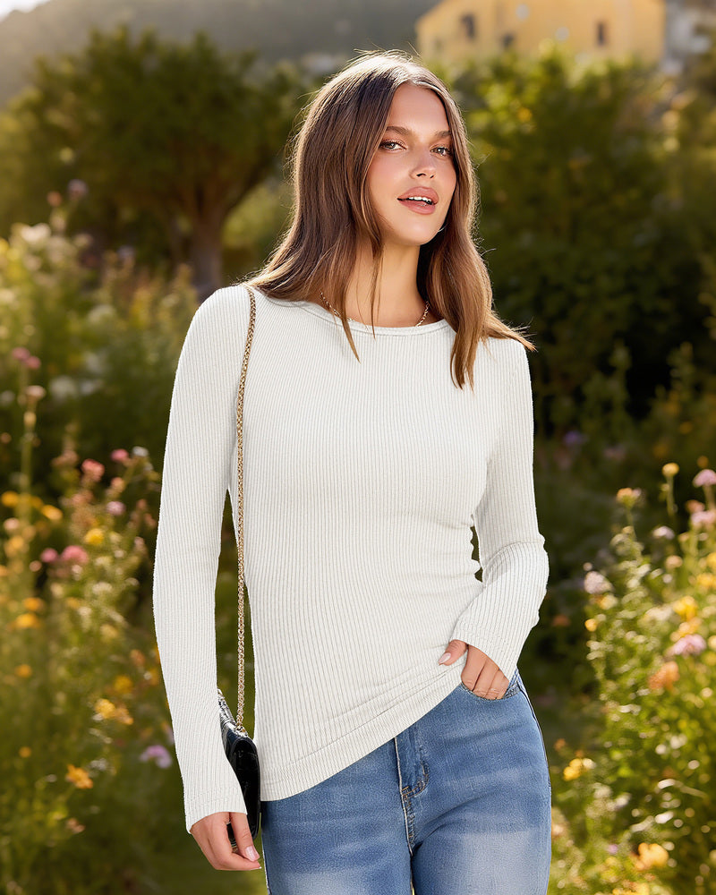 Long Sleeve Shirts Women Ribbed Thermal Undershirts