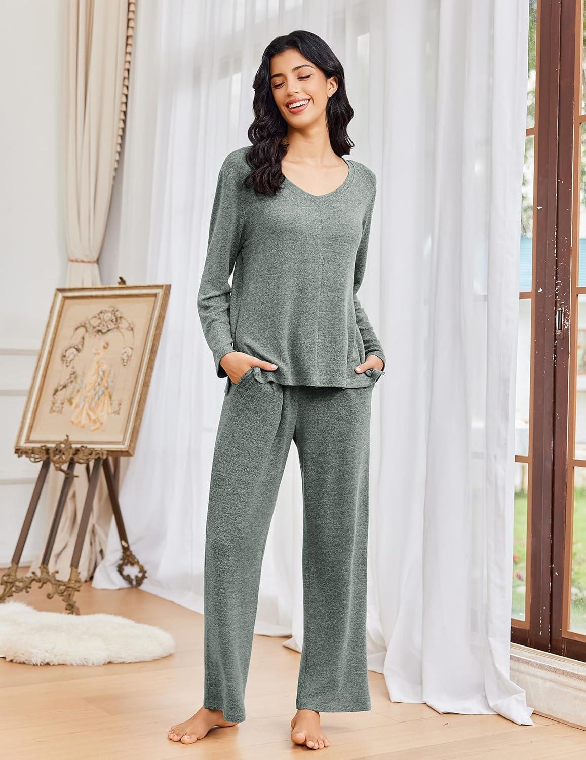 2 Piece Lounge Sets V Neck Matching Pjs Soft Sleepwear