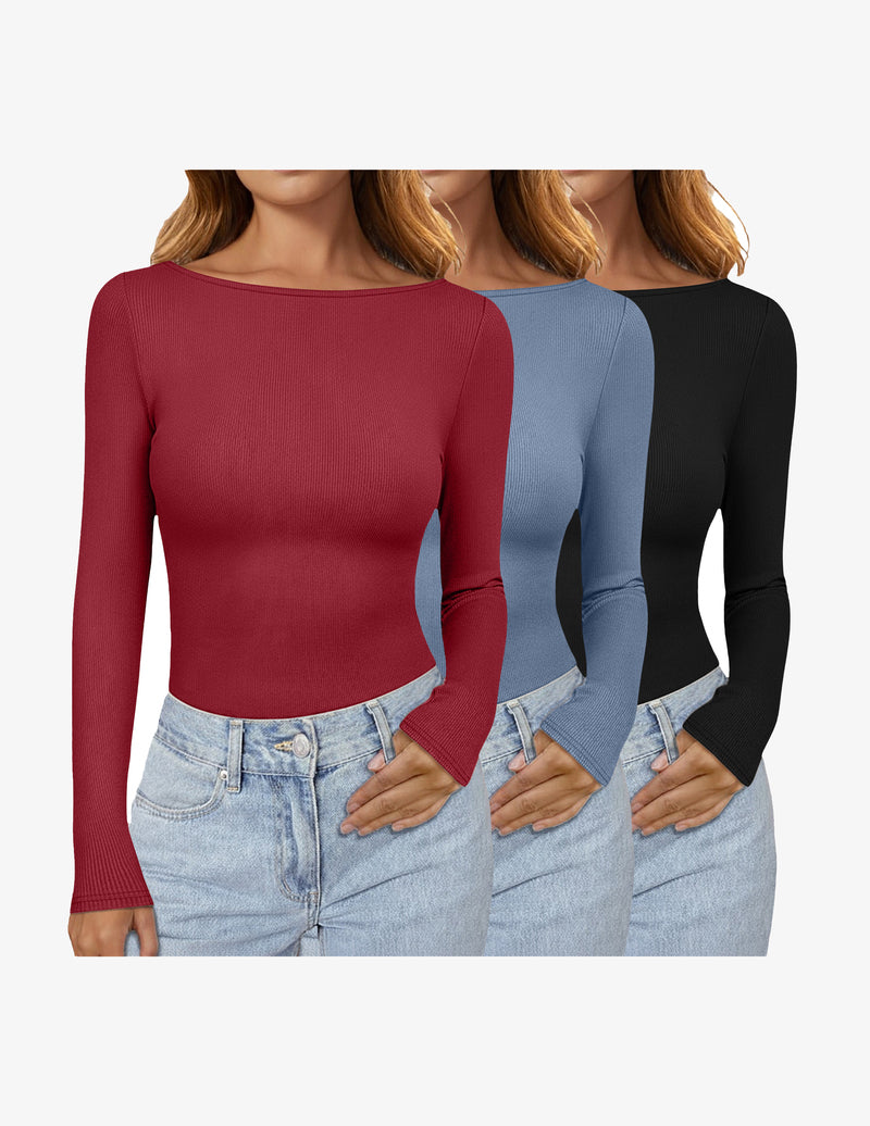 3 Pack Long Sleeve Shirts Square Neck Basic Tops