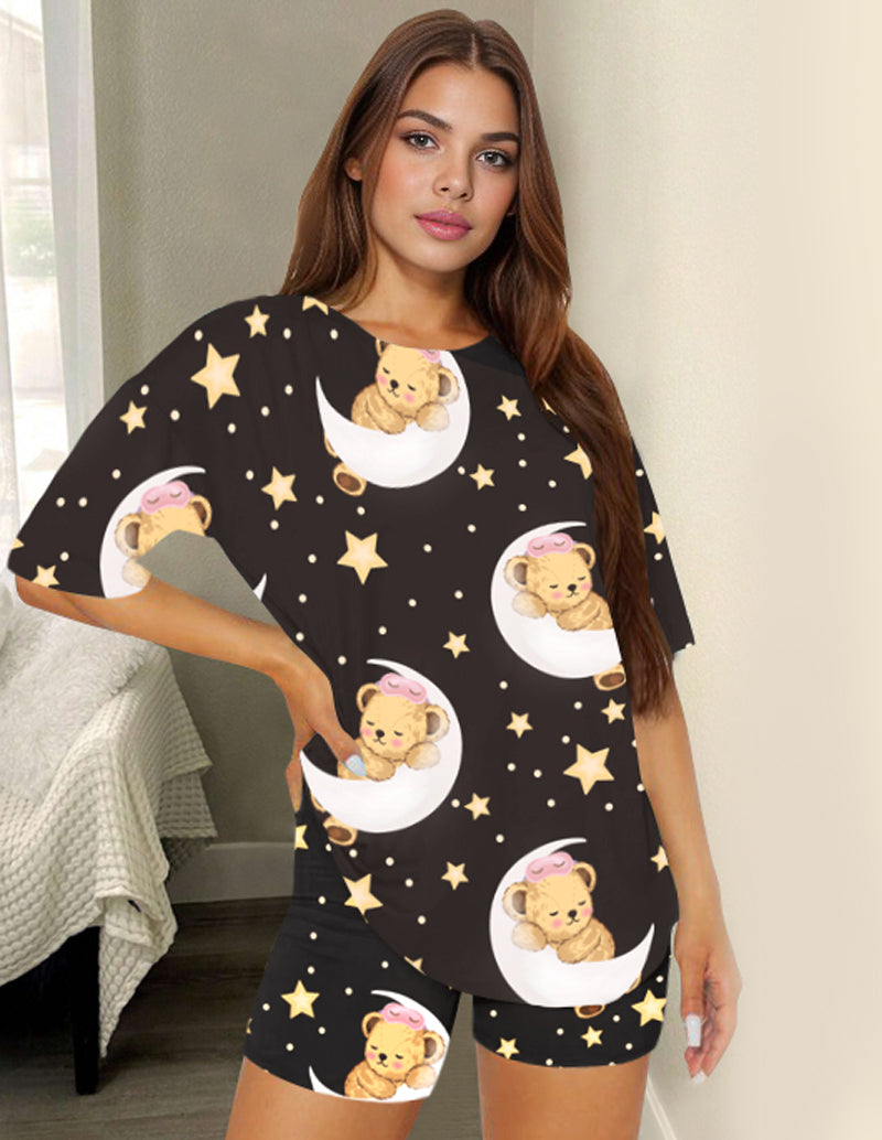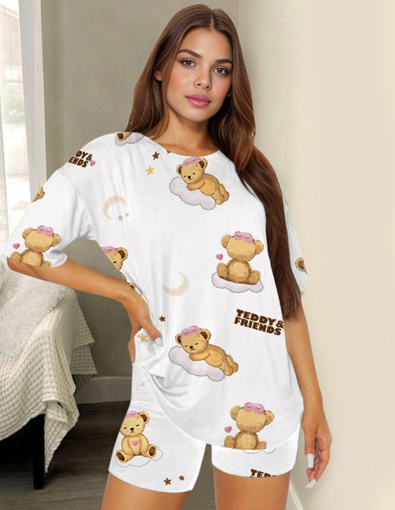 Casual Teddy Bear Print T-Shirt Shorts Set