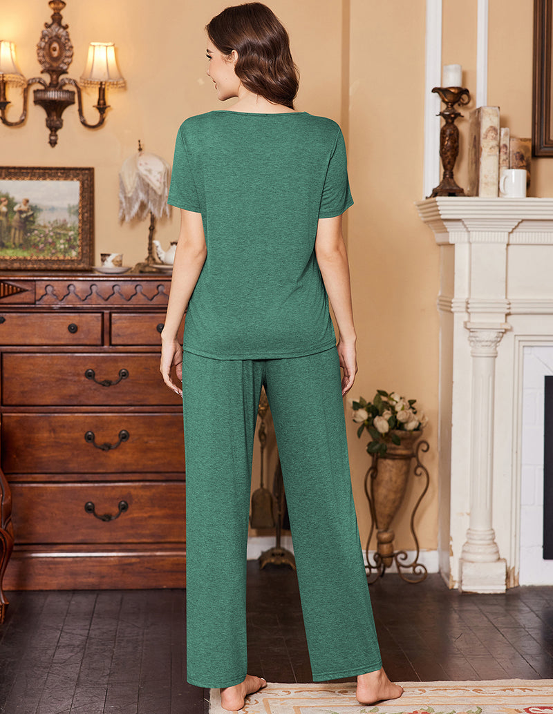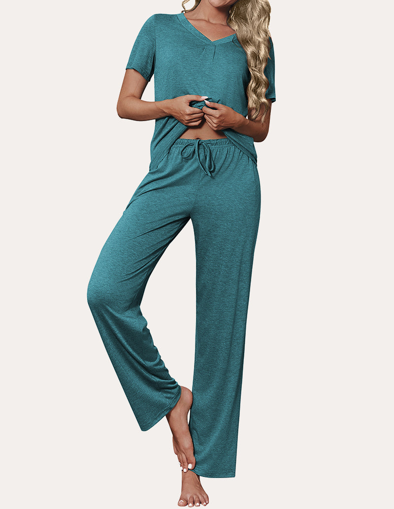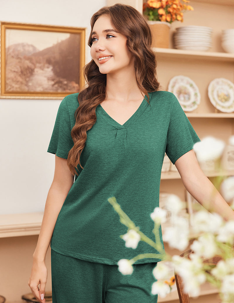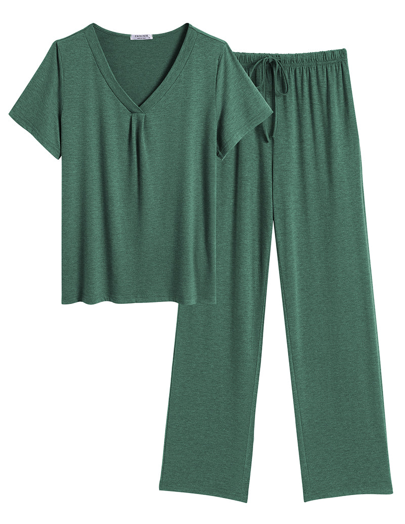 Ekouaer Ruched V-Neck Pajamas Set (US Only)